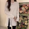 Blusa Branca de Proteção Solar para Mulheres Estilo Francês Preguiçoso Casual Solta Camiseta Início da Primavera Fina Ligeiramente Transparente Top Tricotado de Manga Comprida