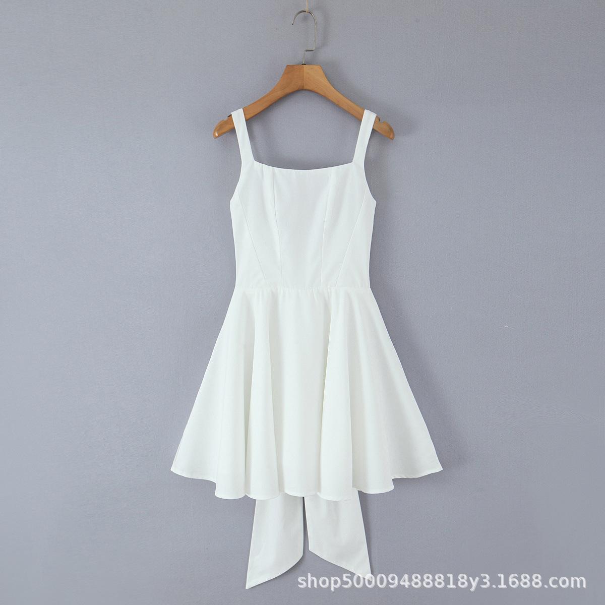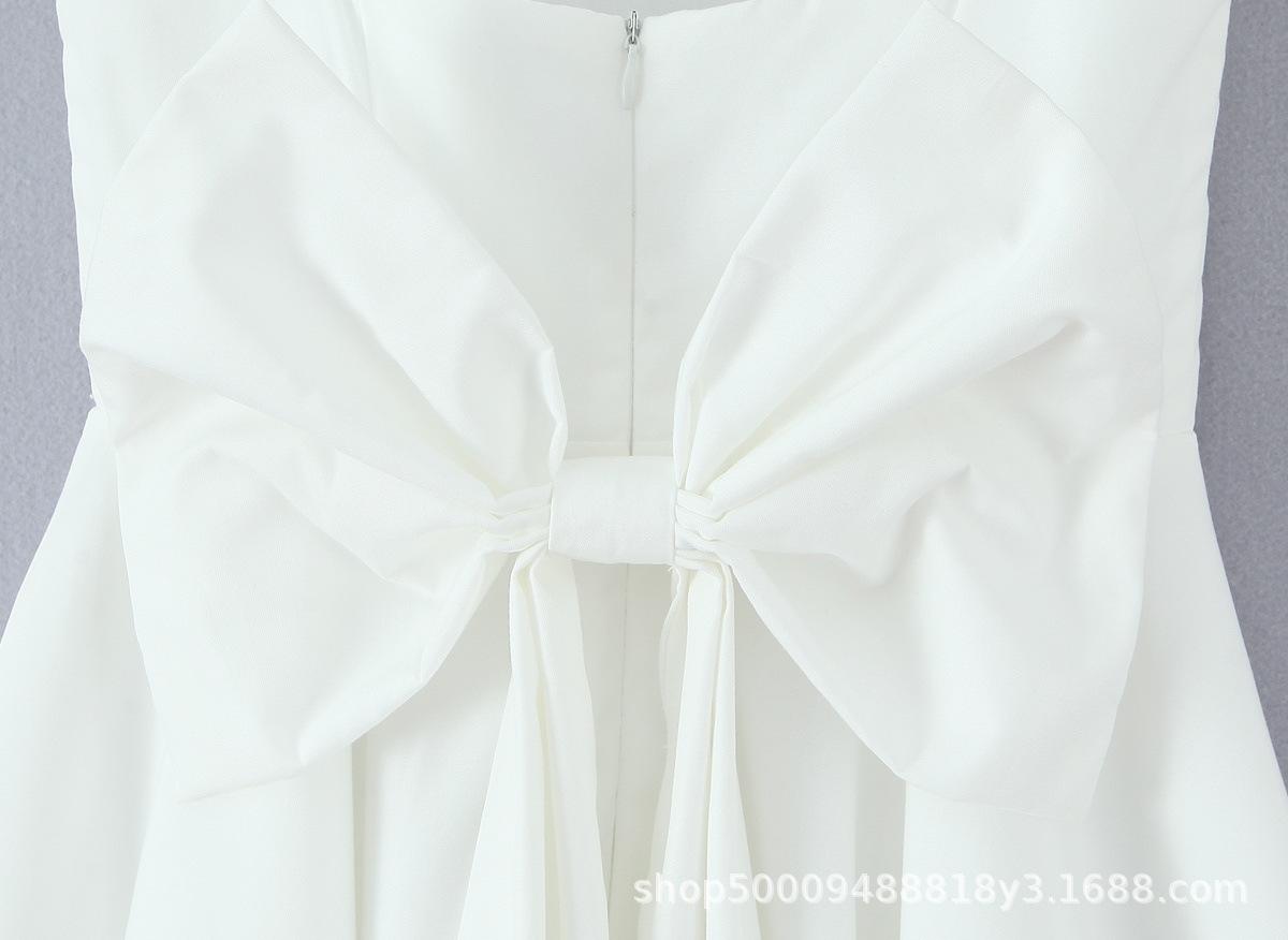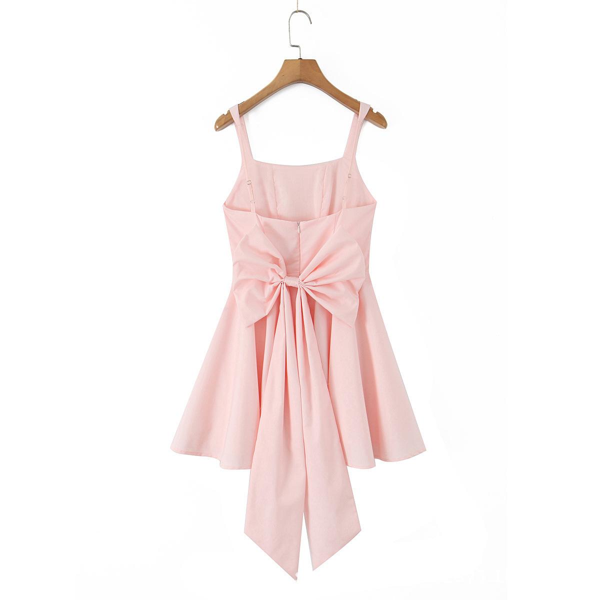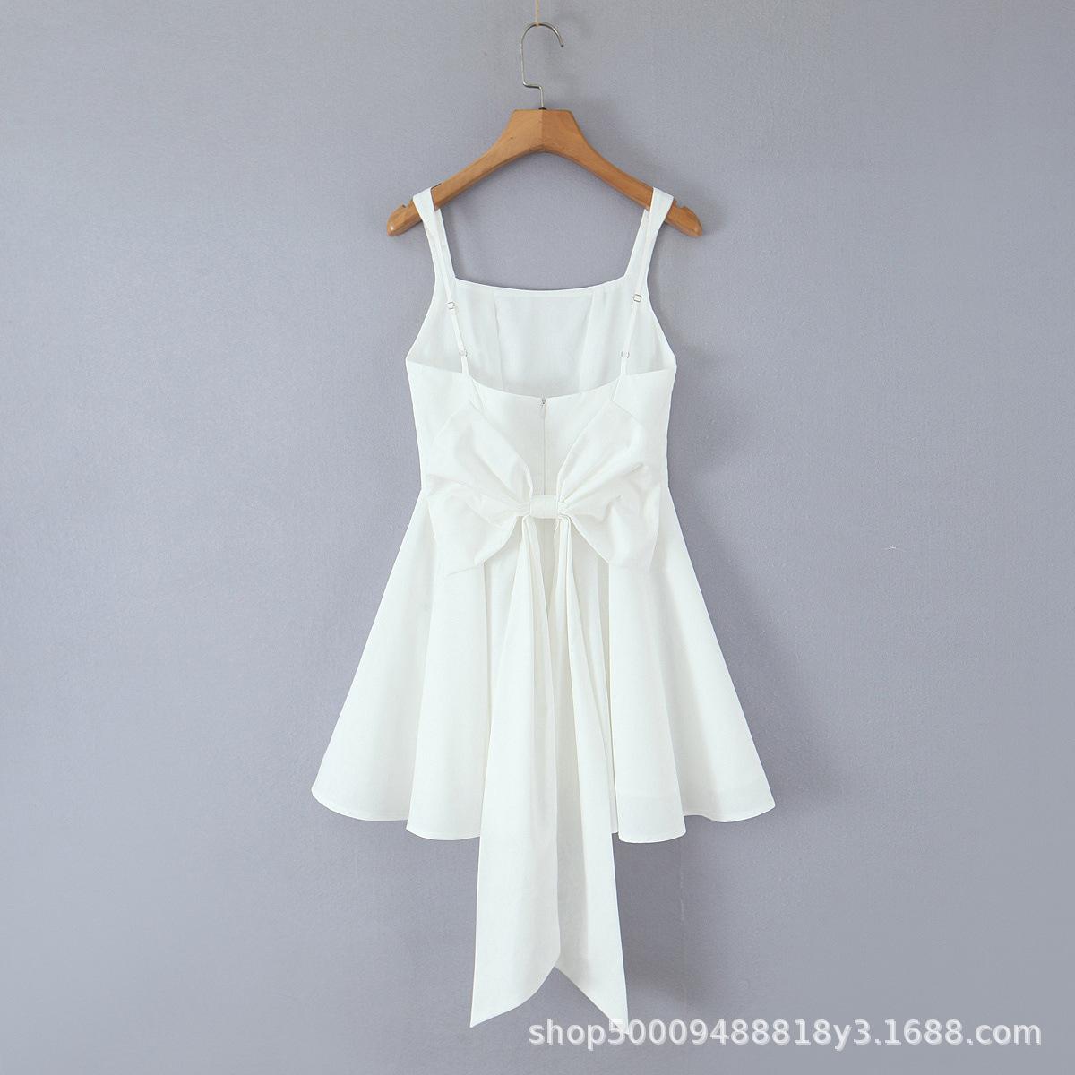 2025 Novo Estilo de Verão Estilo Europeu e Americano Design Francês Vestido Suspensor de Laço Grande Sem Costas Vestido Cintura