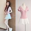 Lindo e Puro Conjunto de Saia Godê Cinturada de Verão, Look Preppy Chic Doce e Apimentado, Vestido Único e Lindo para Mulheres