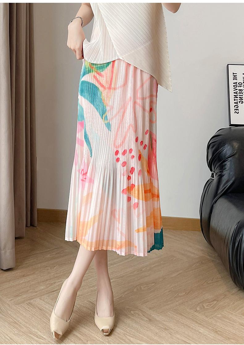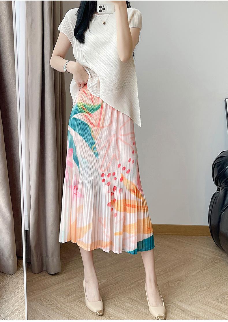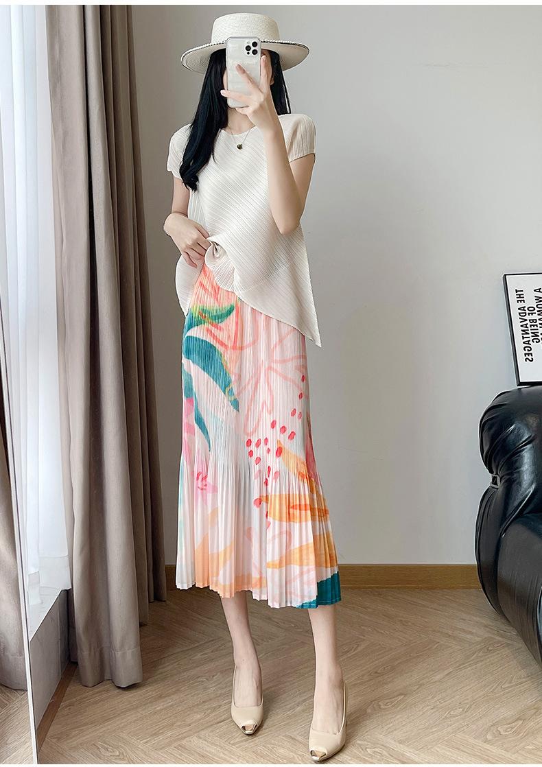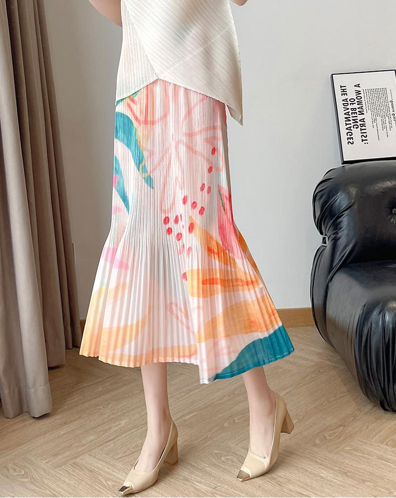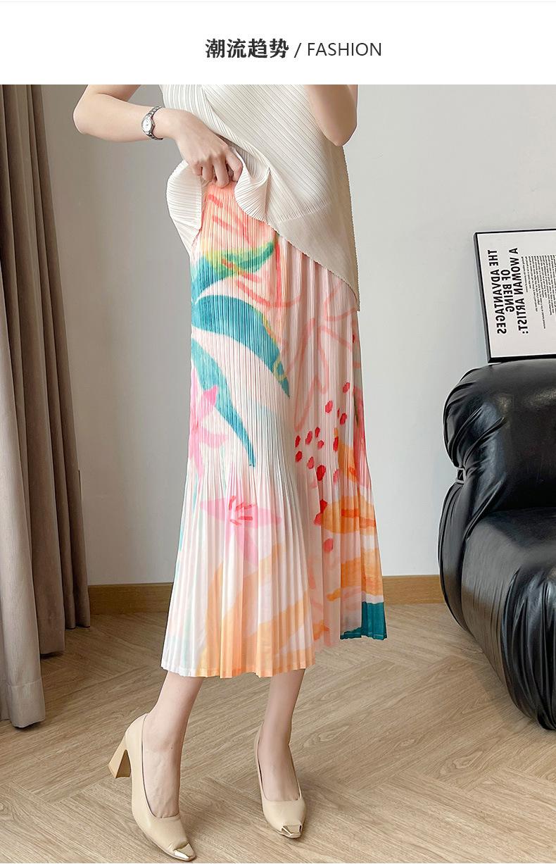 Saia Plissada Estilo Miyake Estampada para Mulheres 2024 Novo Design de Nicho Emagrecimento Elegante Saia Plissada Versátil