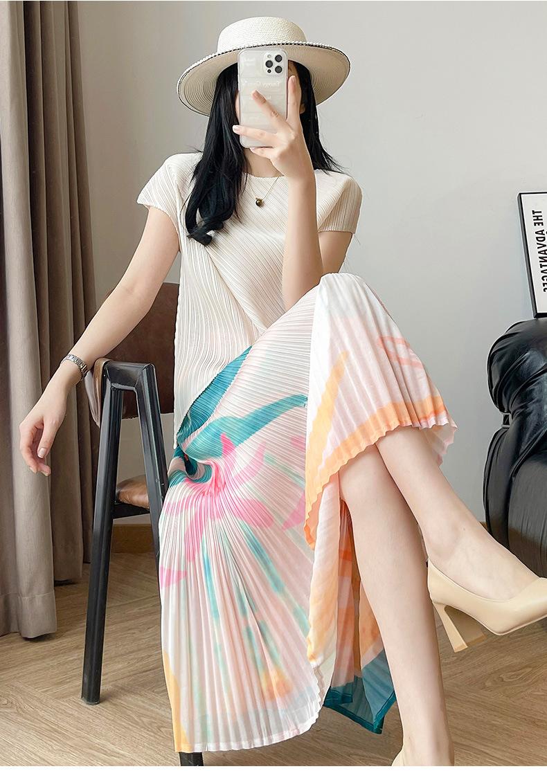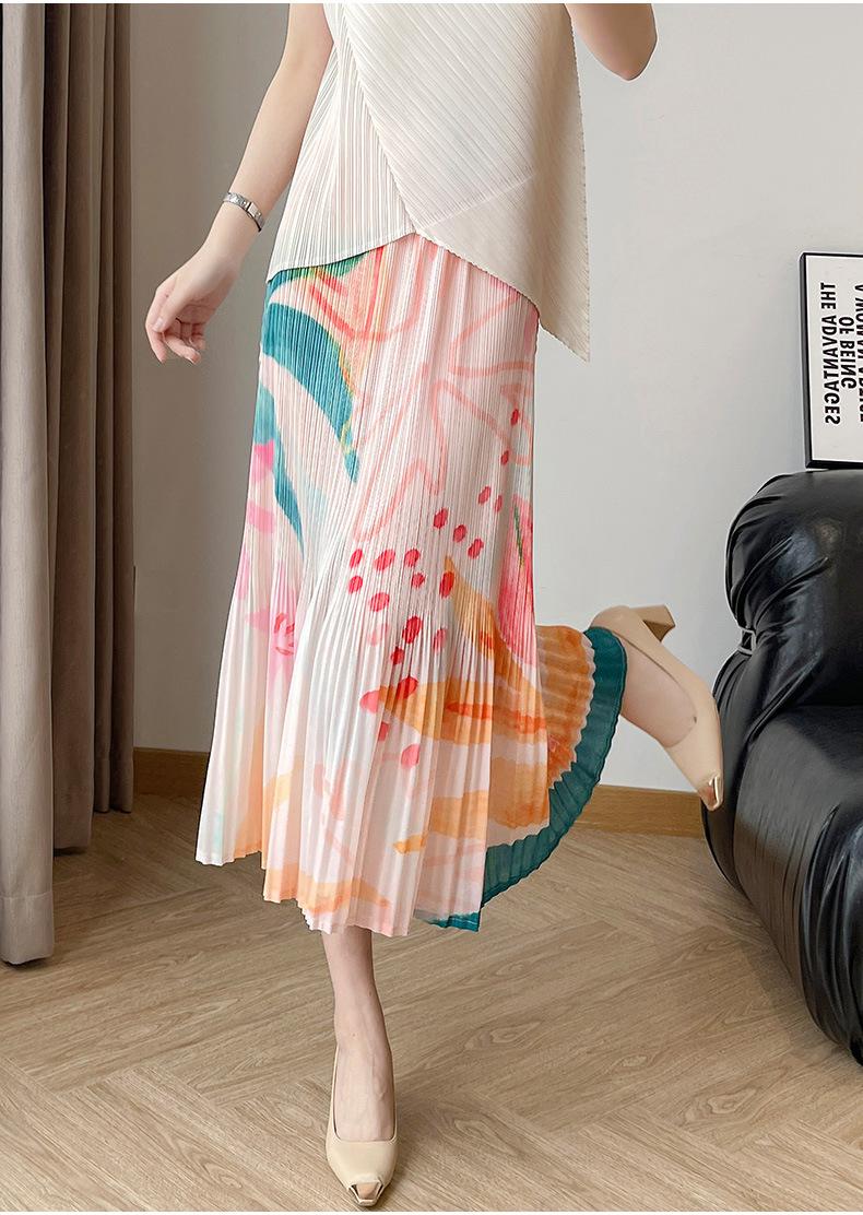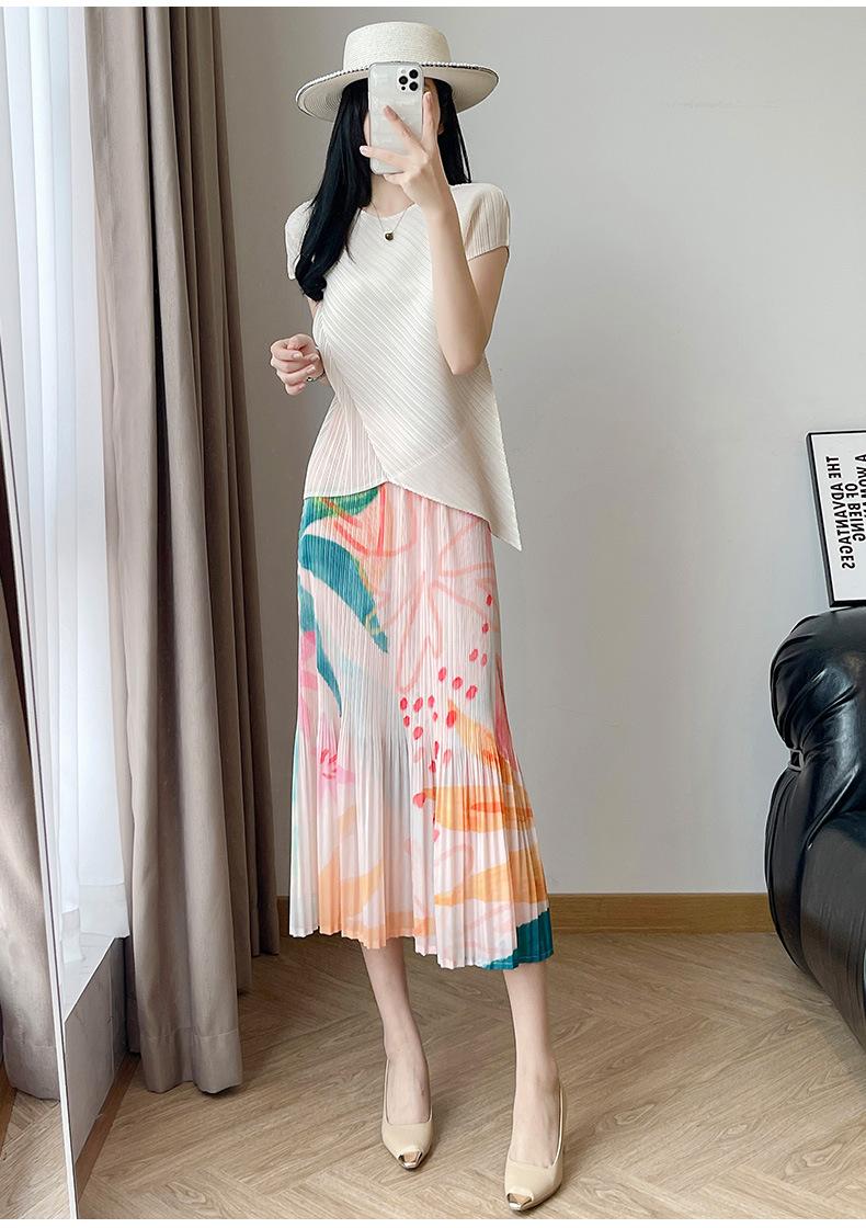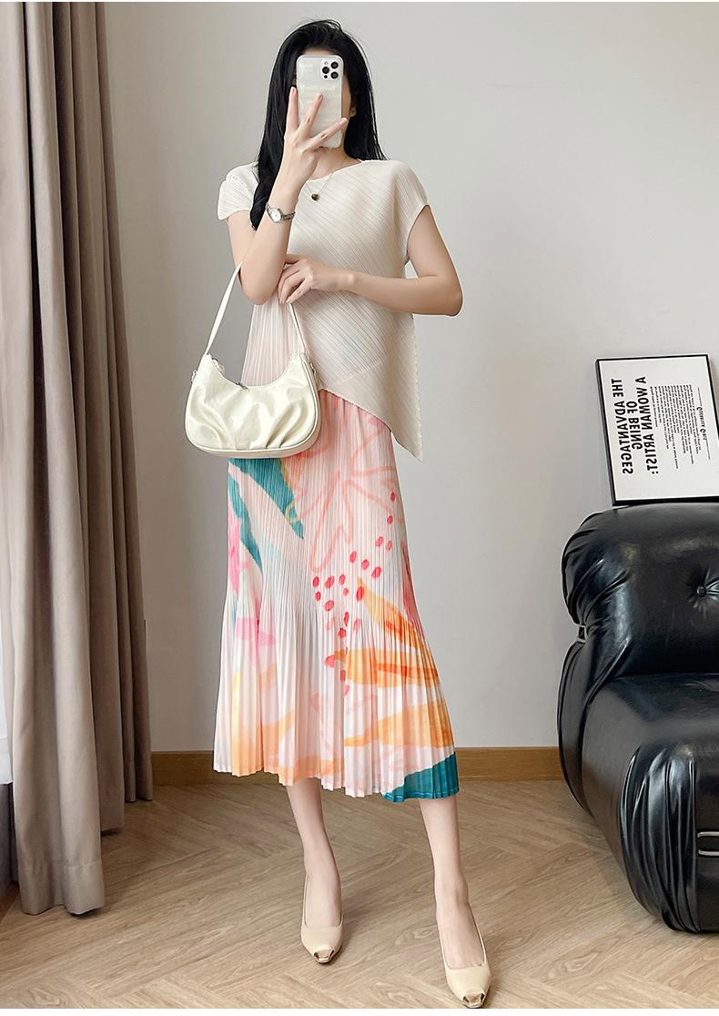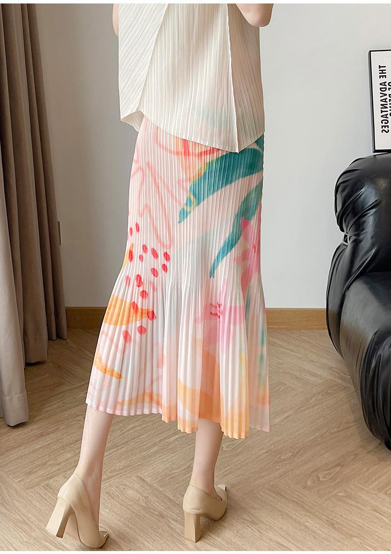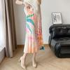 Saia Plissada Estilo Miyake Estampada para Mulheres 2024 Novo Design de Nicho Emagrecimento Elegante Saia Plissada Versátil