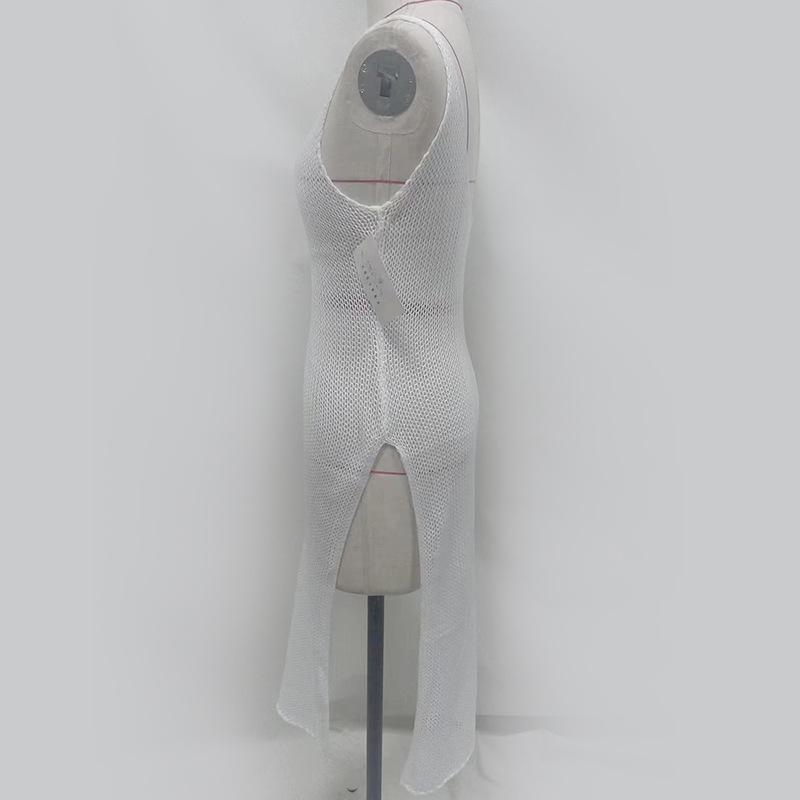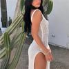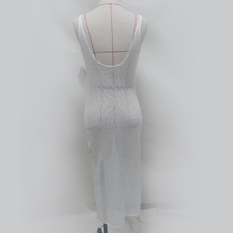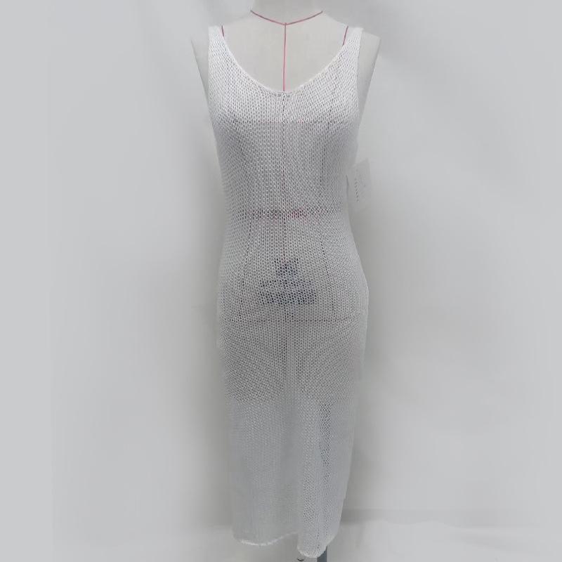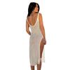 2023 Europeu e Americano Transfronteiriço Blusa Biquíni Solta Sexy Vazada Vestido de Alças Cor Sólida Vestido de Praia