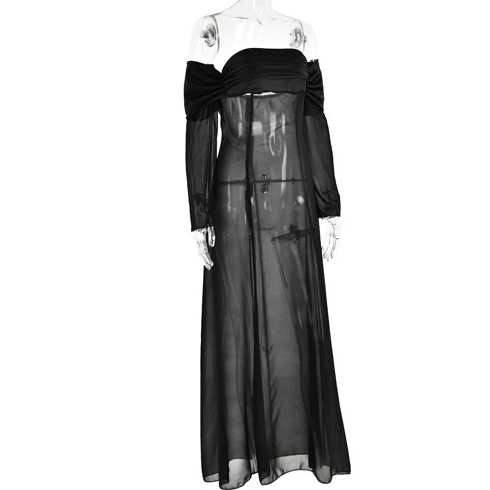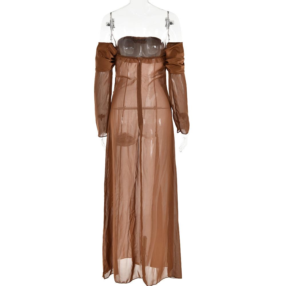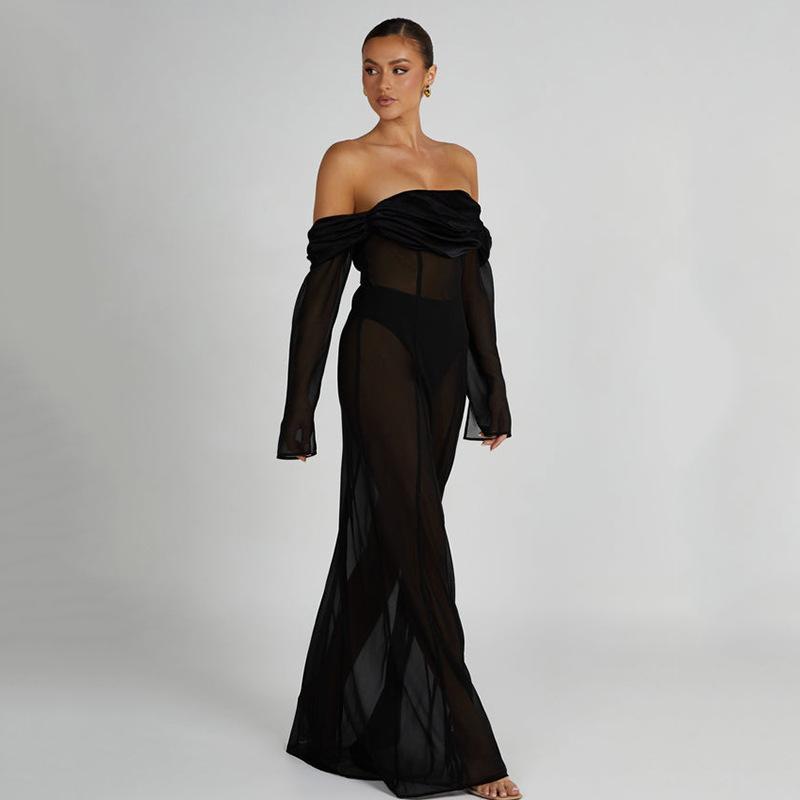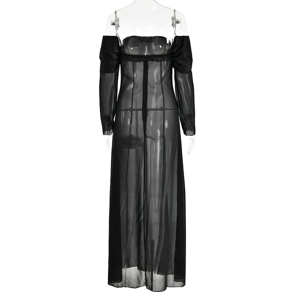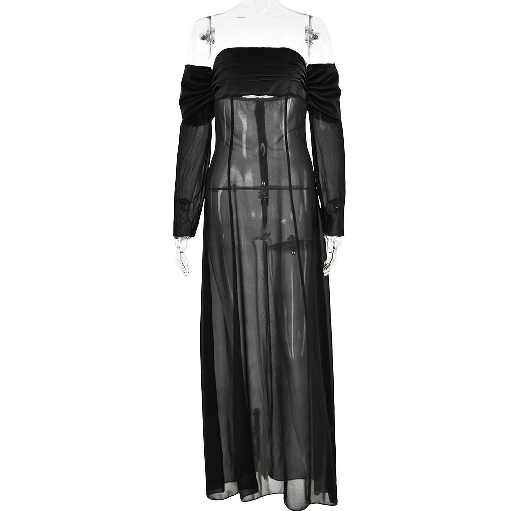 Novo top tubo tomara que caia transfronteiriço europeu e americano, vestido feminino da moda, sexy, para garota quente, manga longa, transparente, outono