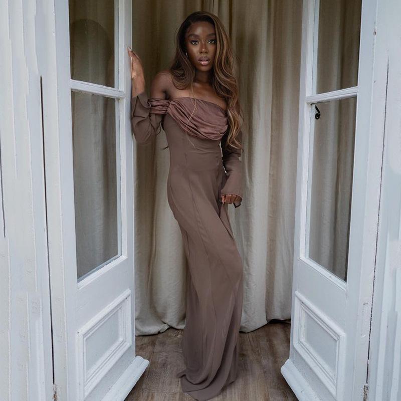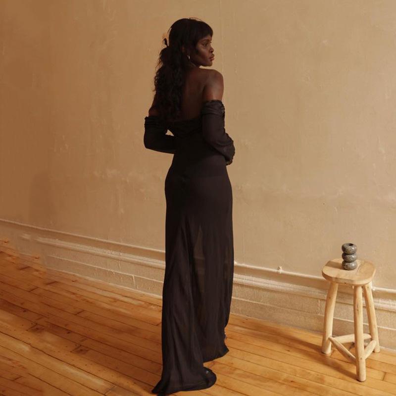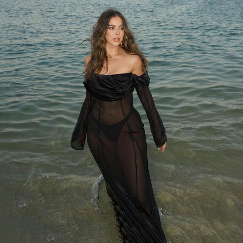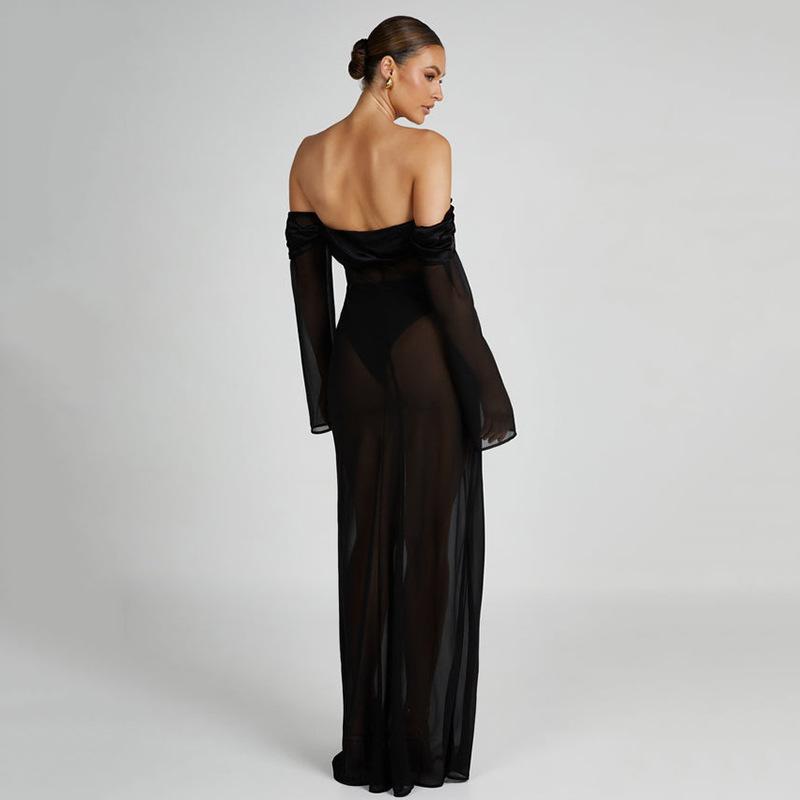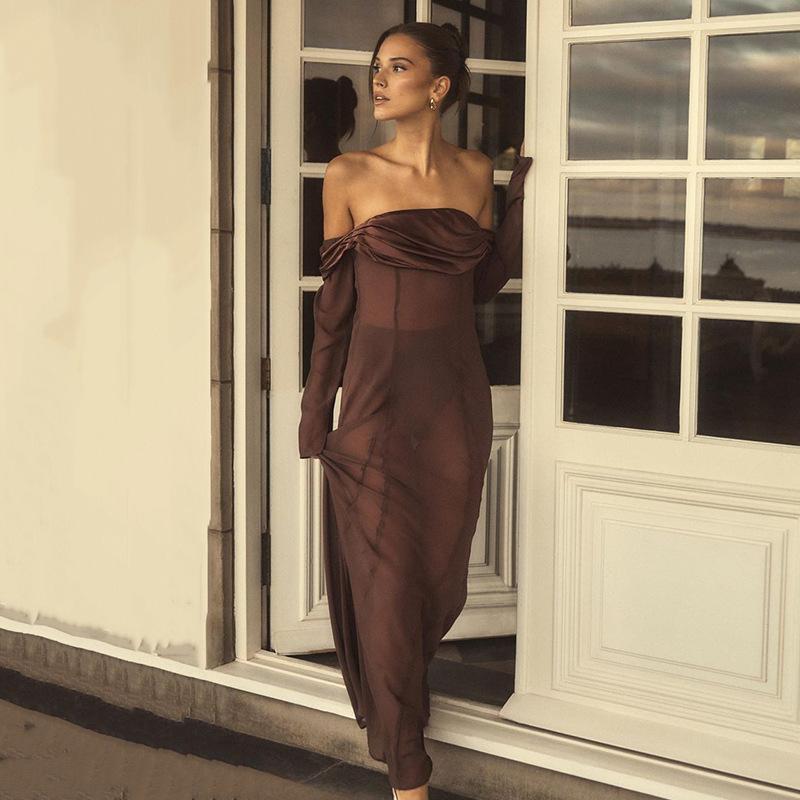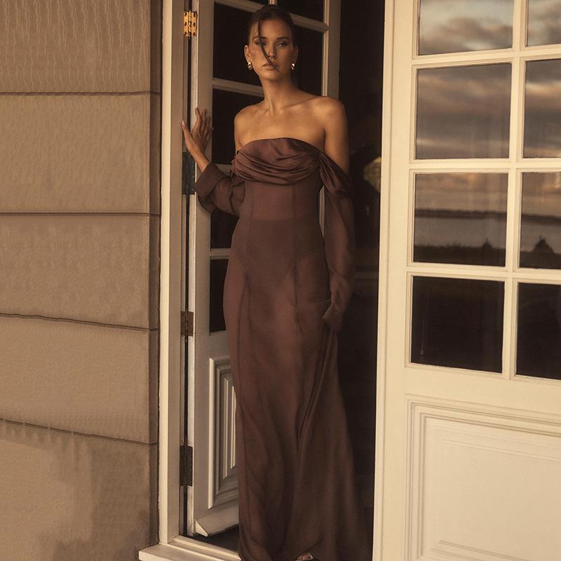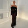 Novo top tubo tomara que caia transfronteiriço europeu e americano, vestido feminino da moda, sexy, para garota quente, manga longa, transparente, outono