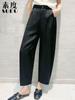 Calças Casuais de Viscose Fina de Verão para Mulheres com Cós Elástico e Textura Clara, Comprimento Cropped