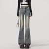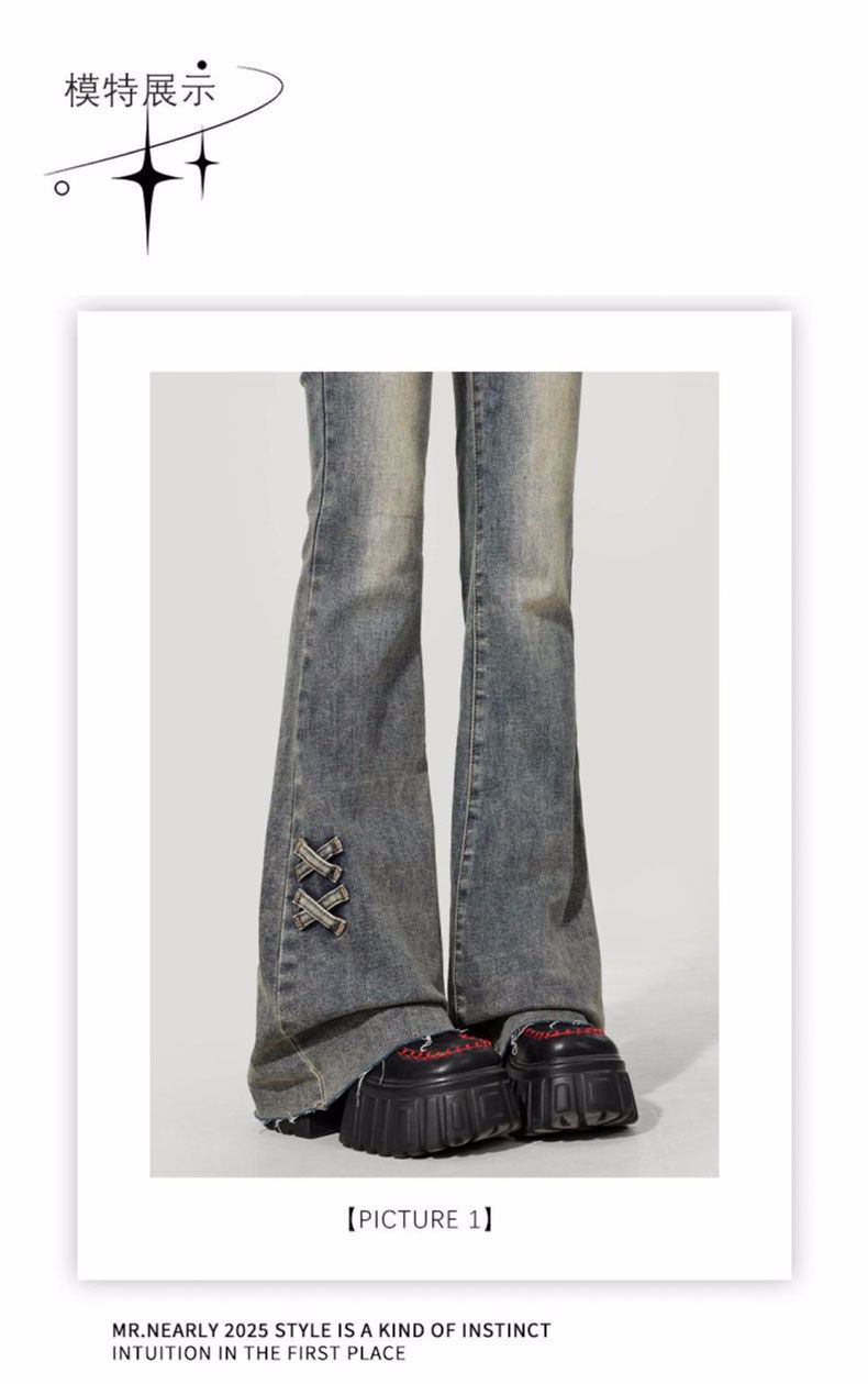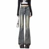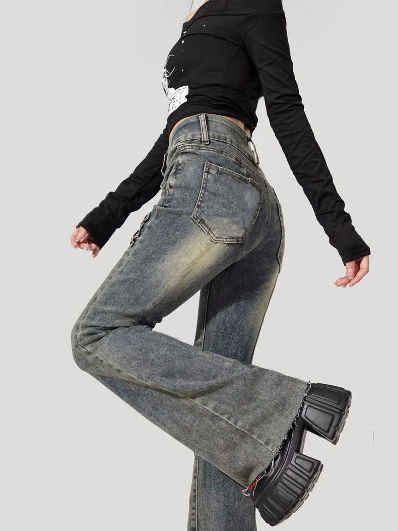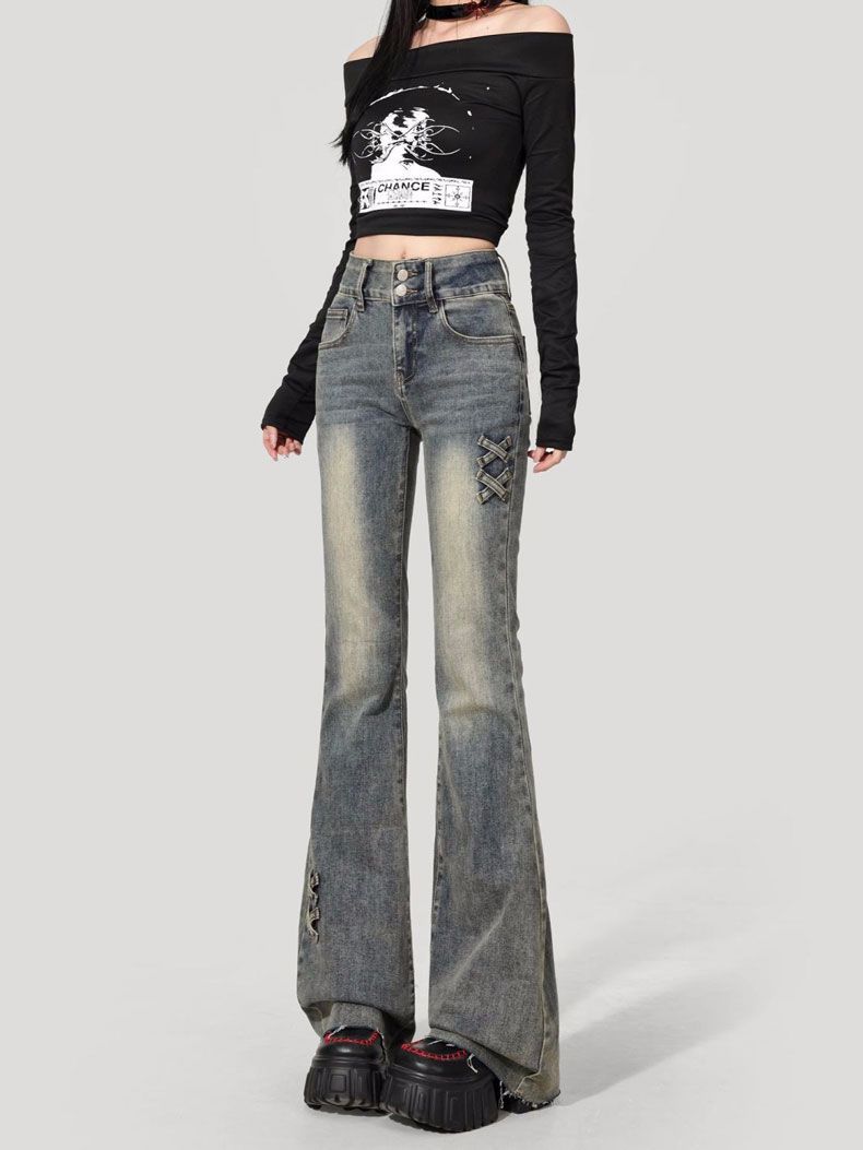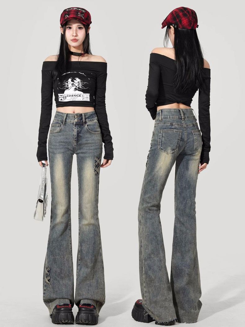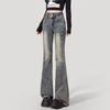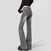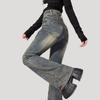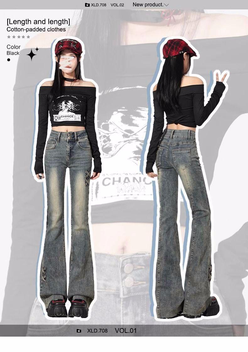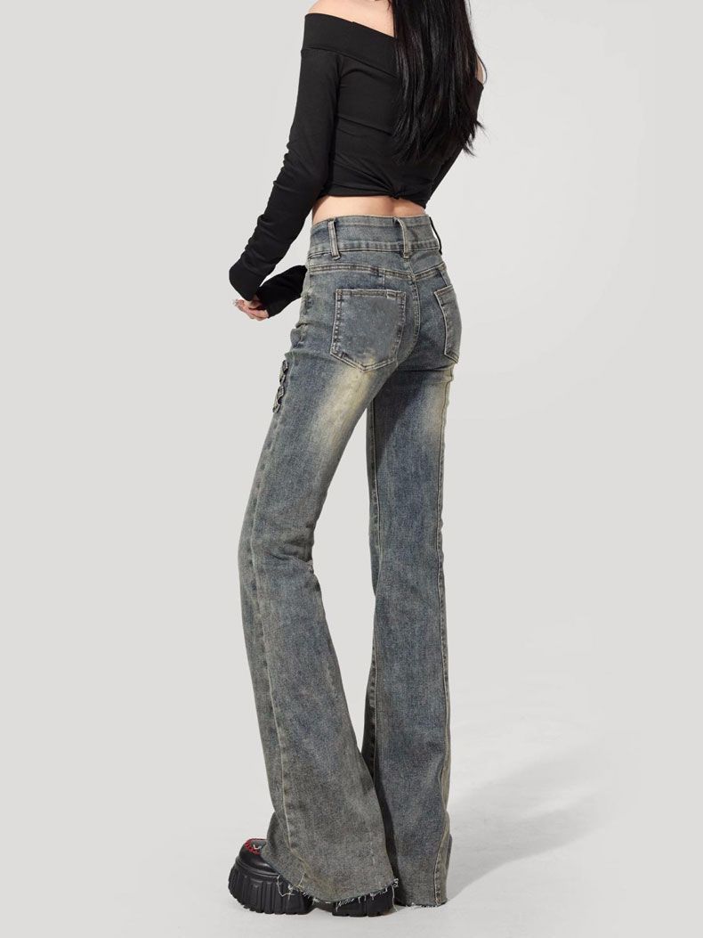 Jeans Flare de Cintura Alta Plus Size para Mulheres com Cintura Elástica, Ajuste Slim, Design de Botão Duplo, Calças Compridas Retro Boca de Sino