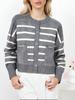 Suéter Transfronteiriço Europeu e Americano Amazon Feminino Novo Outono e Inverno Gola Redonda com Bolsos Abotoamento Simples Listrado Comércio Exterior Cardigã Tricotado