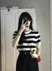 Estilo Hong Kong Vintage Chic Listrado Regata Feminina Primavera e Verão Slim Fit Base Interna Top Elegante Colete para Uso Externo