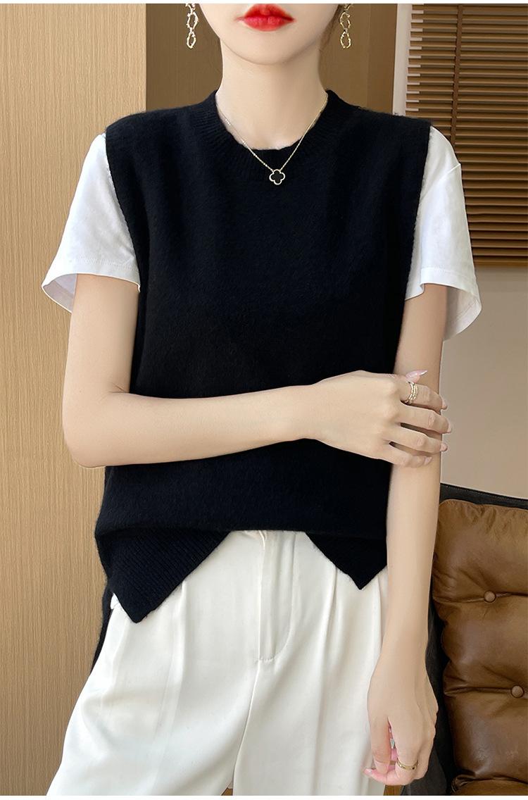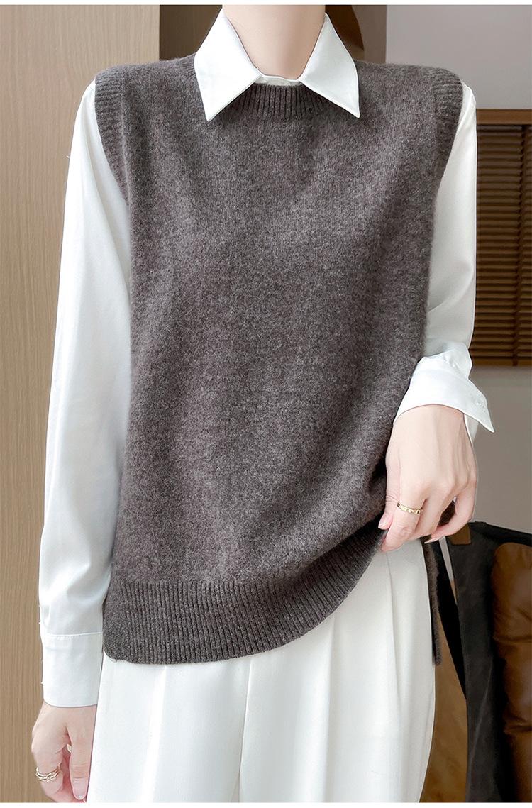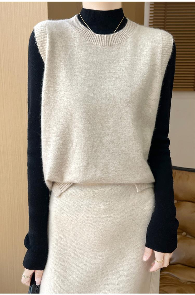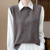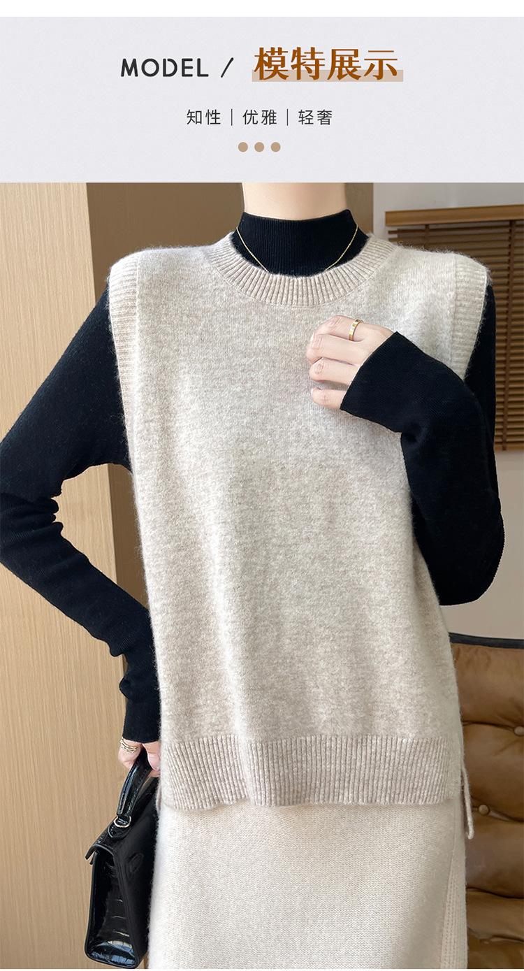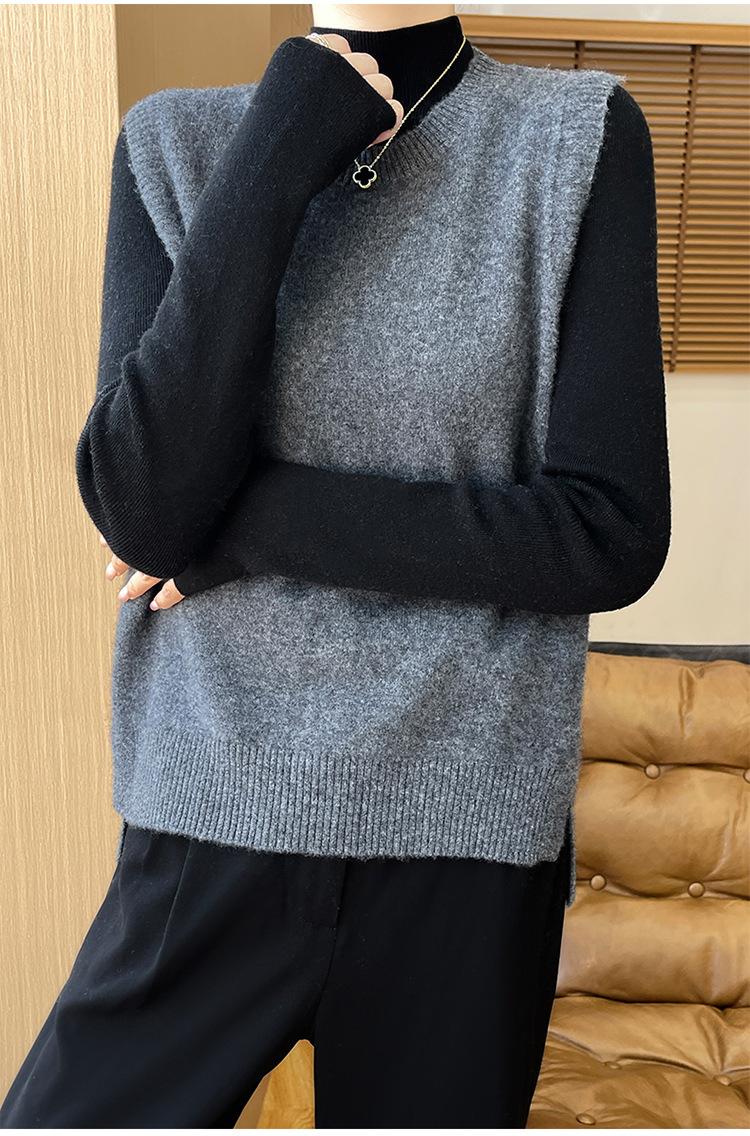 Regata de caxemira temperamento roupa exterior engrossada gola redonda fenda colete moda versátil cor sólida suéter malharia