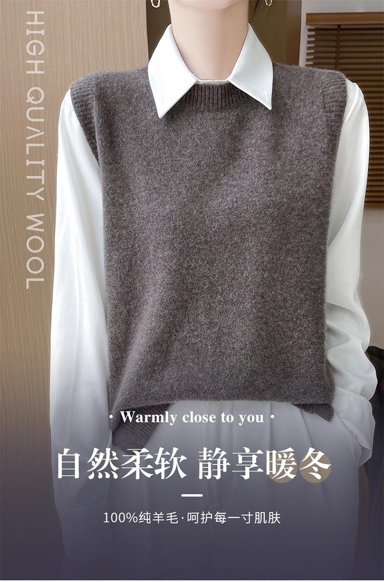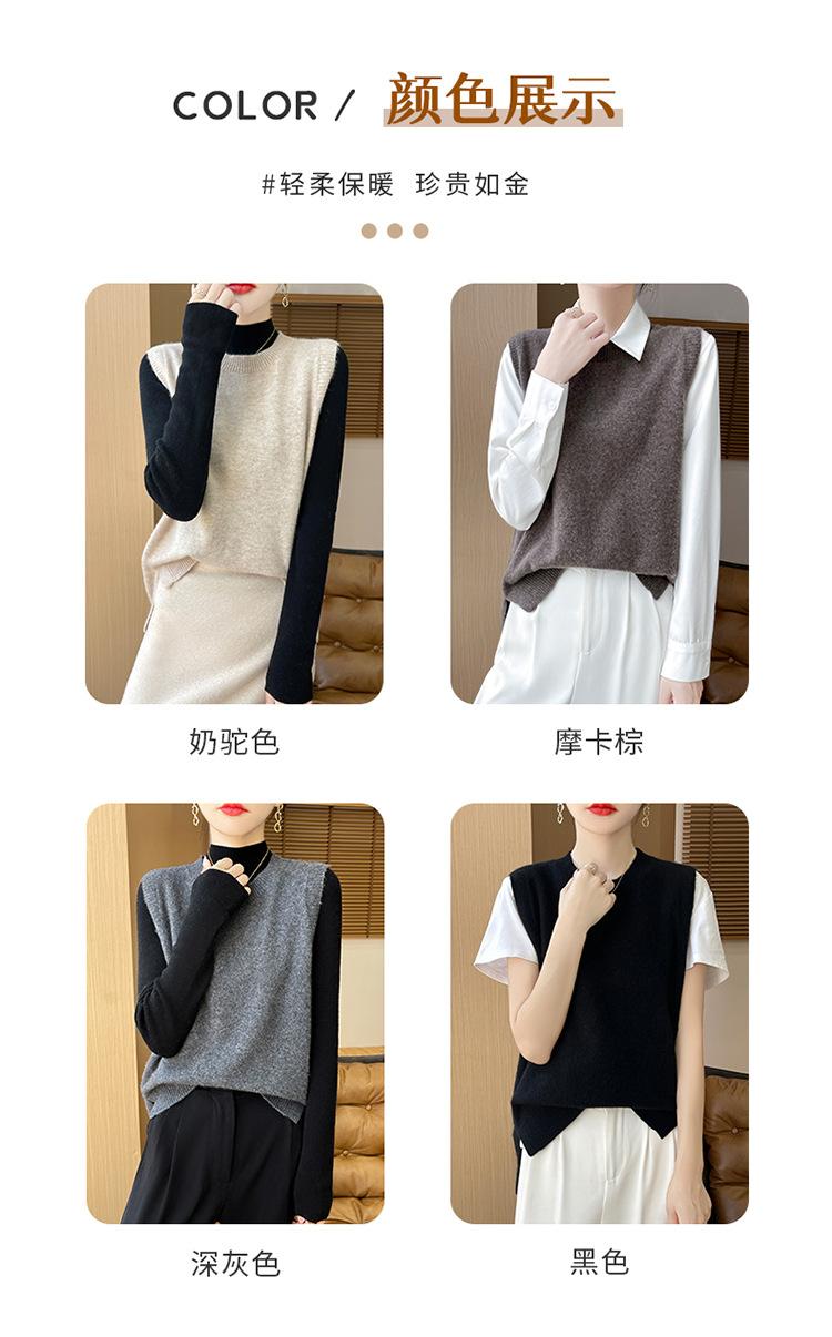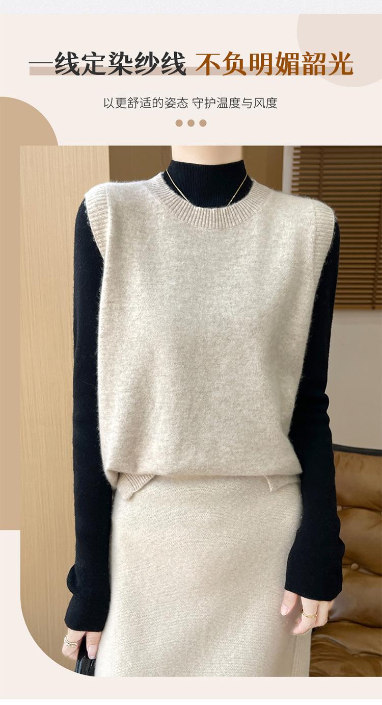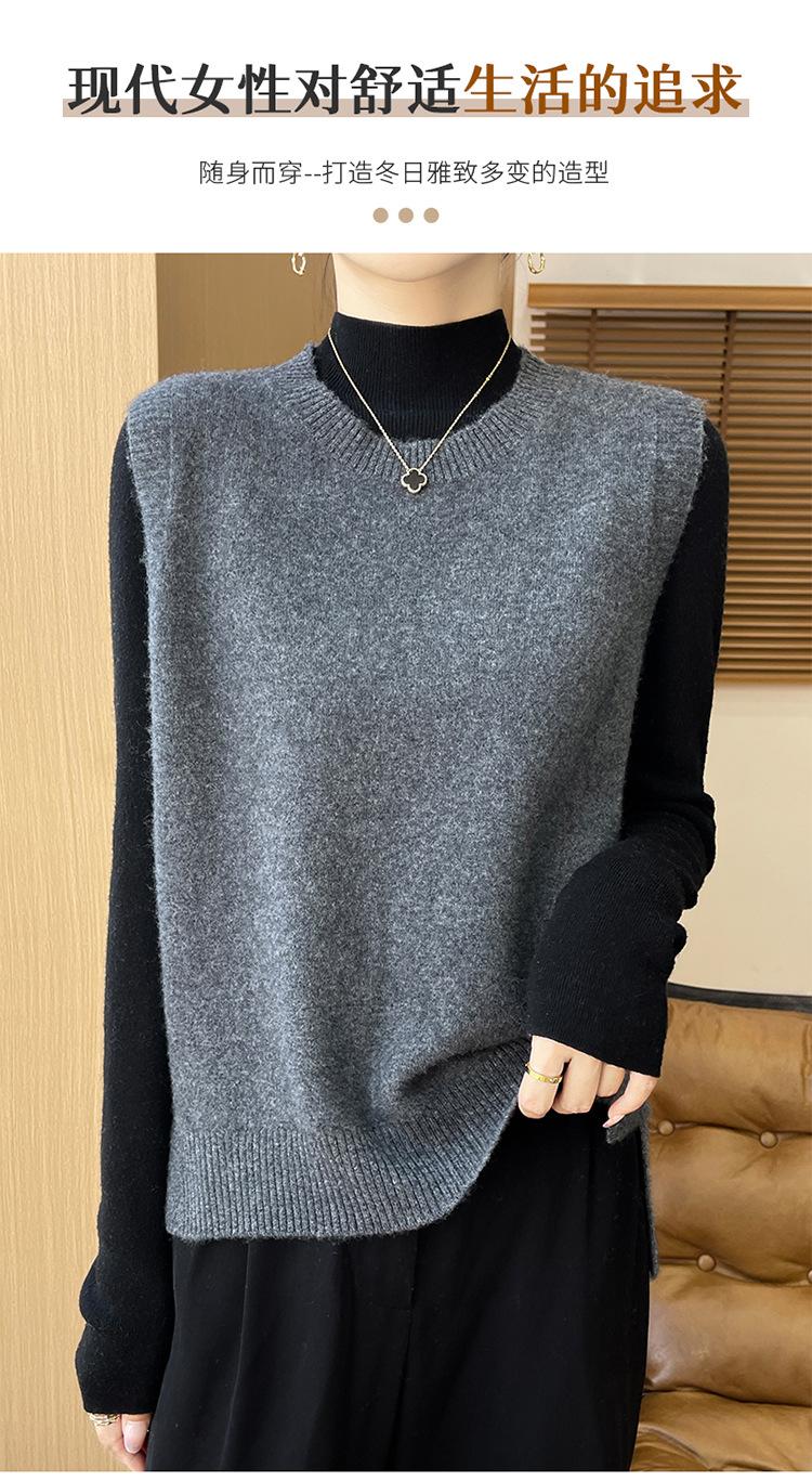 Regata de caxemira temperamento roupa exterior engrossada gola redonda fenda colete moda versátil cor sólida suéter malharia