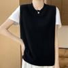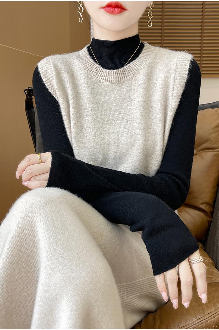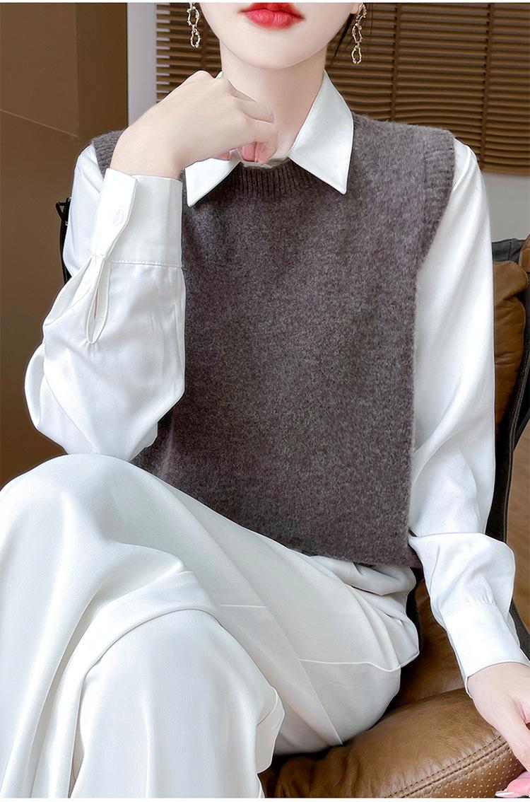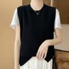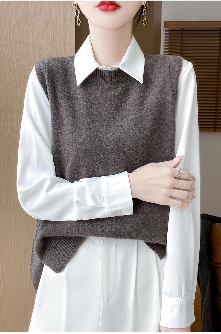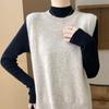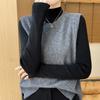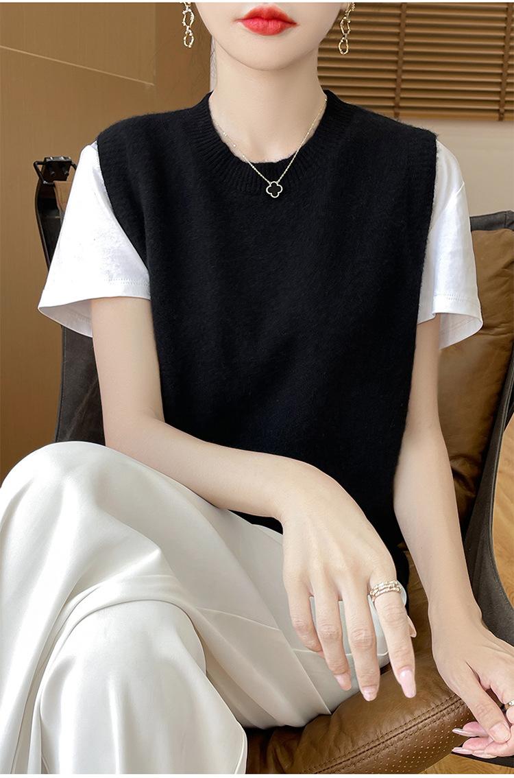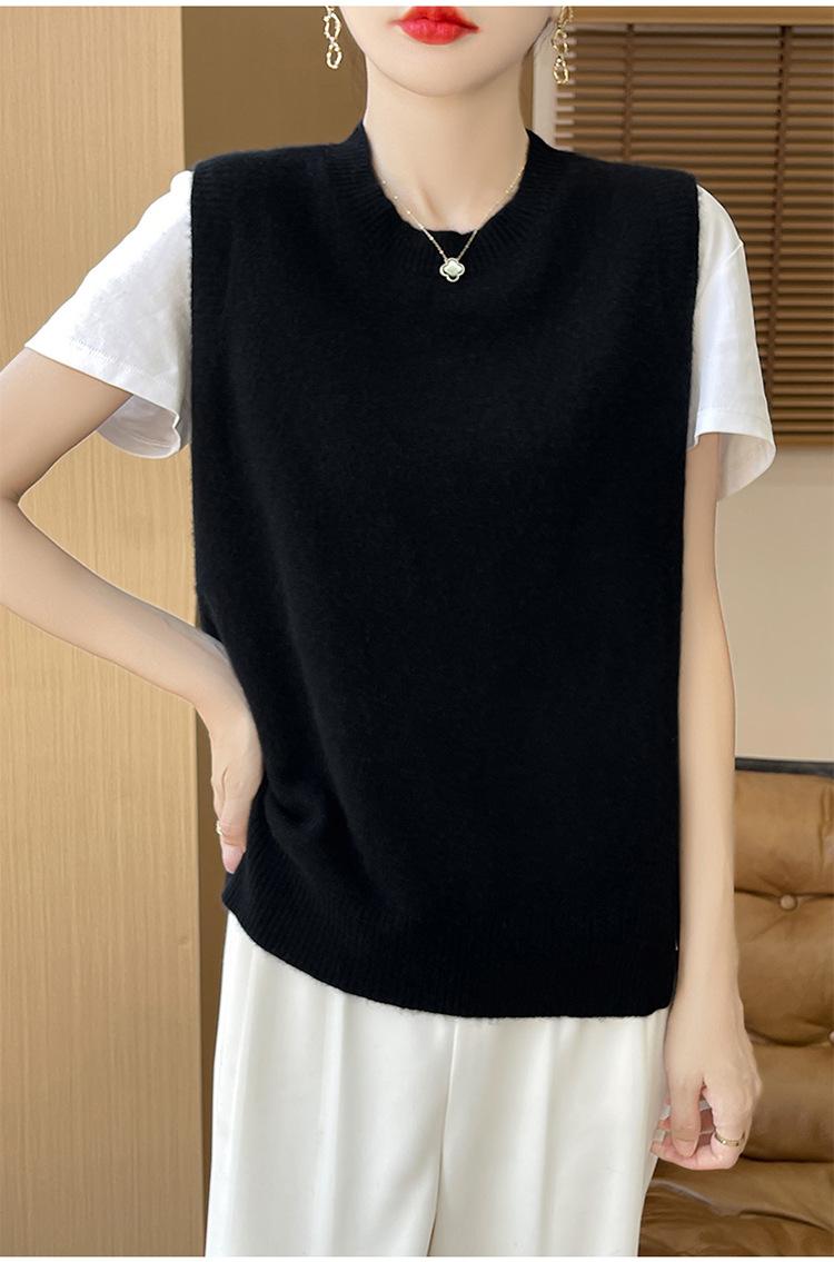 Regata de caxemira temperamento roupa exterior engrossada gola redonda fenda colete moda versátil cor sólida suéter malharia