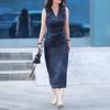 680310 Big Love Beauty Yiyuan 2025 Primavera Novo Conjunto de Duas Peças Moda Tongle Terno Emagrecedor Slim-fit Vestido para Mulheres