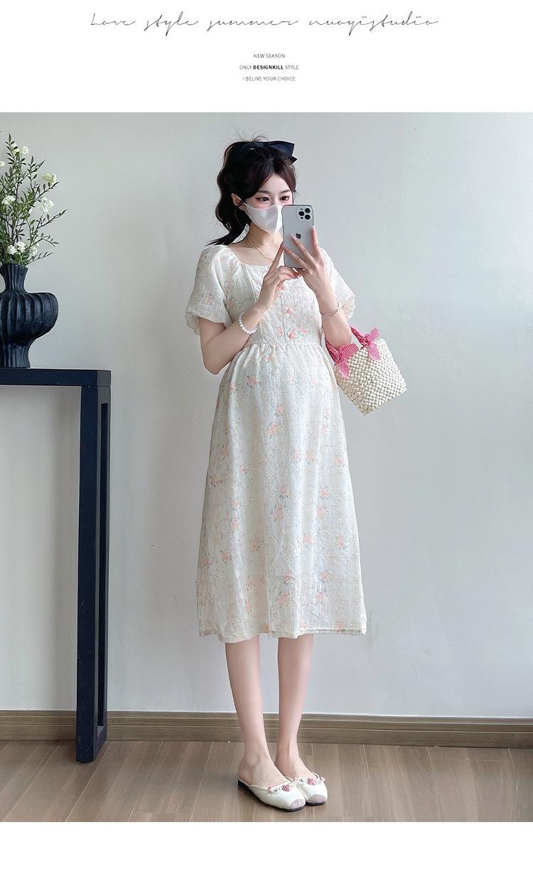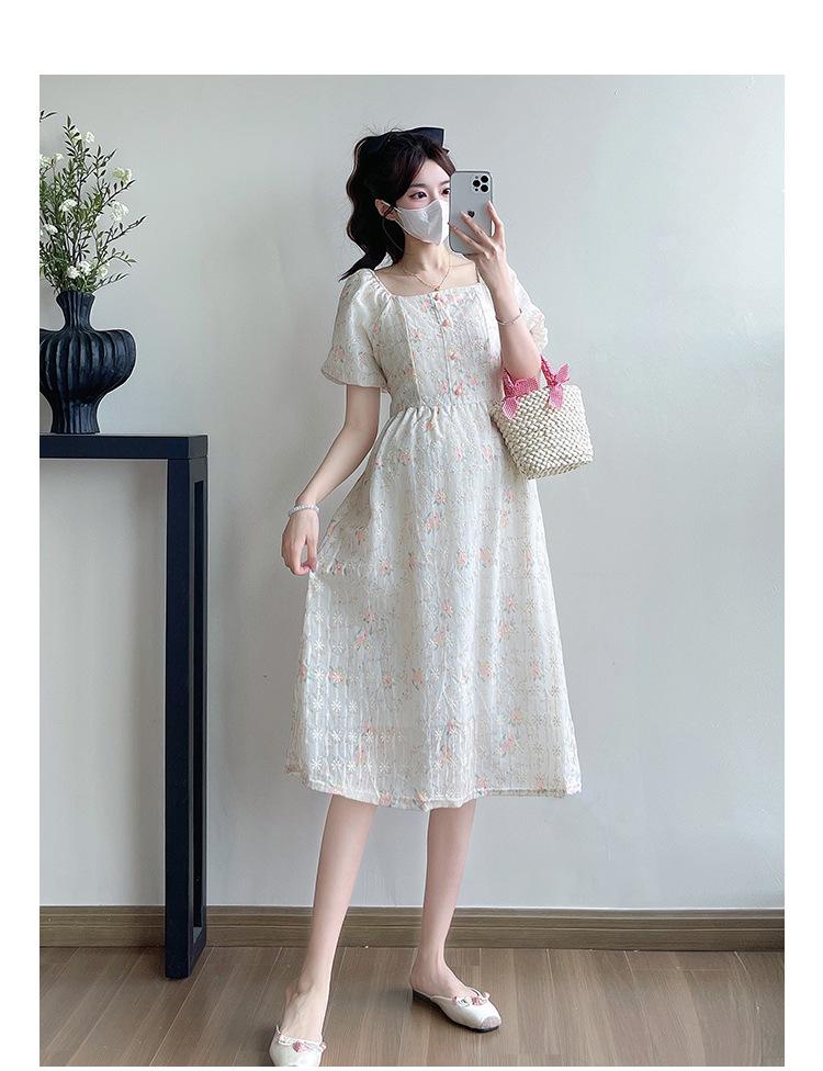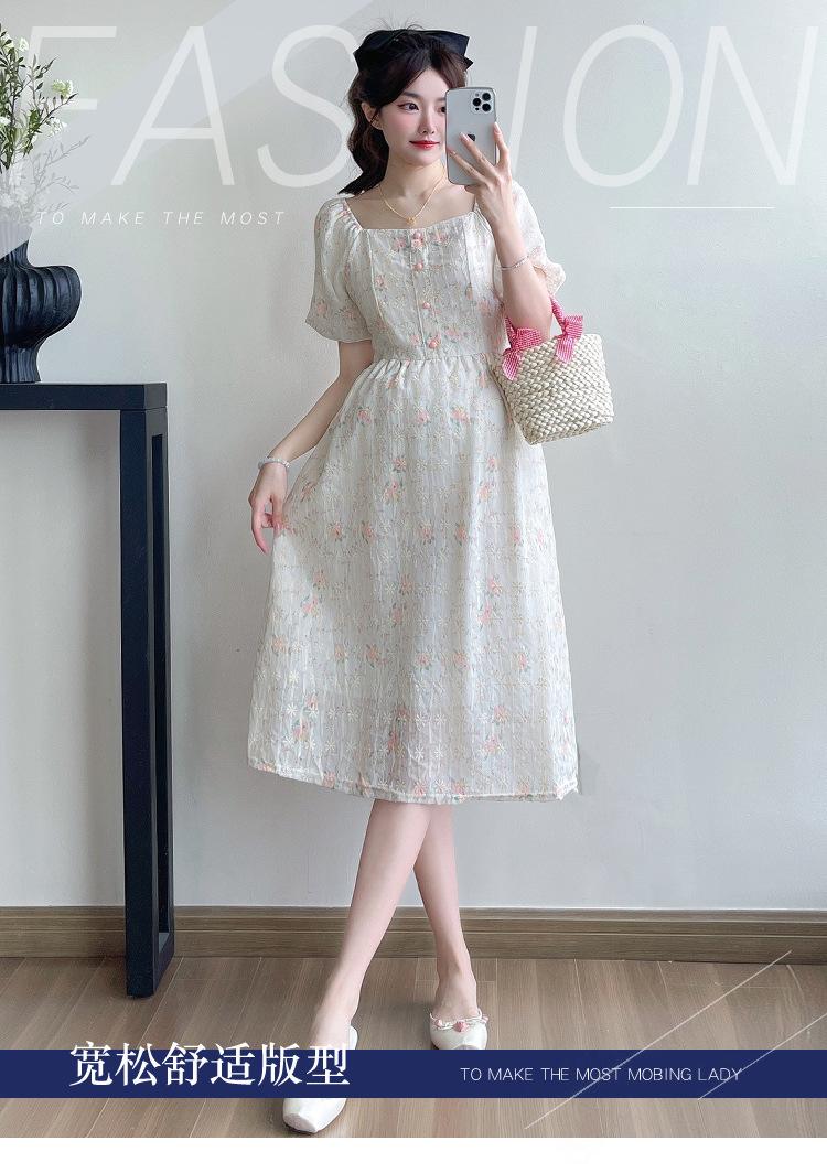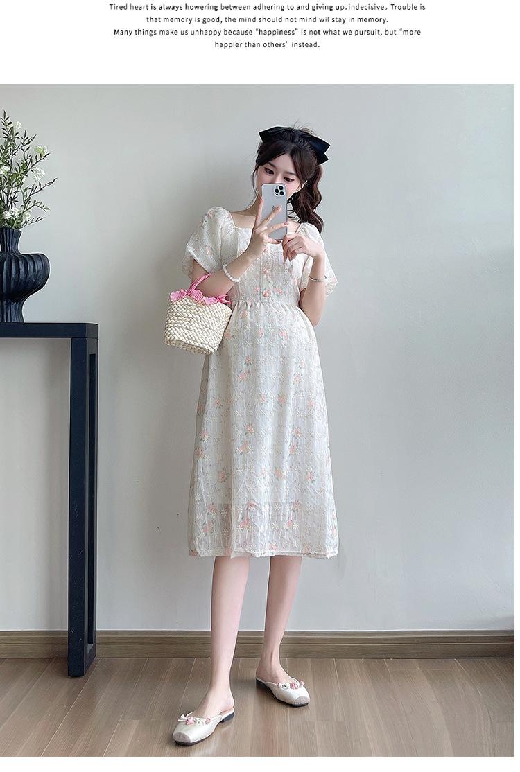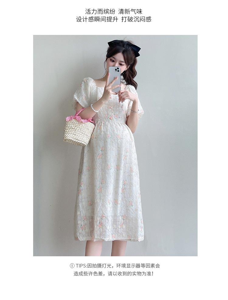 Roupa de Maternidade 2025 Verão Novo Doce Fashion Literário Pequeno Fresco Floral Tamanho Grande Vestido de Maternidade