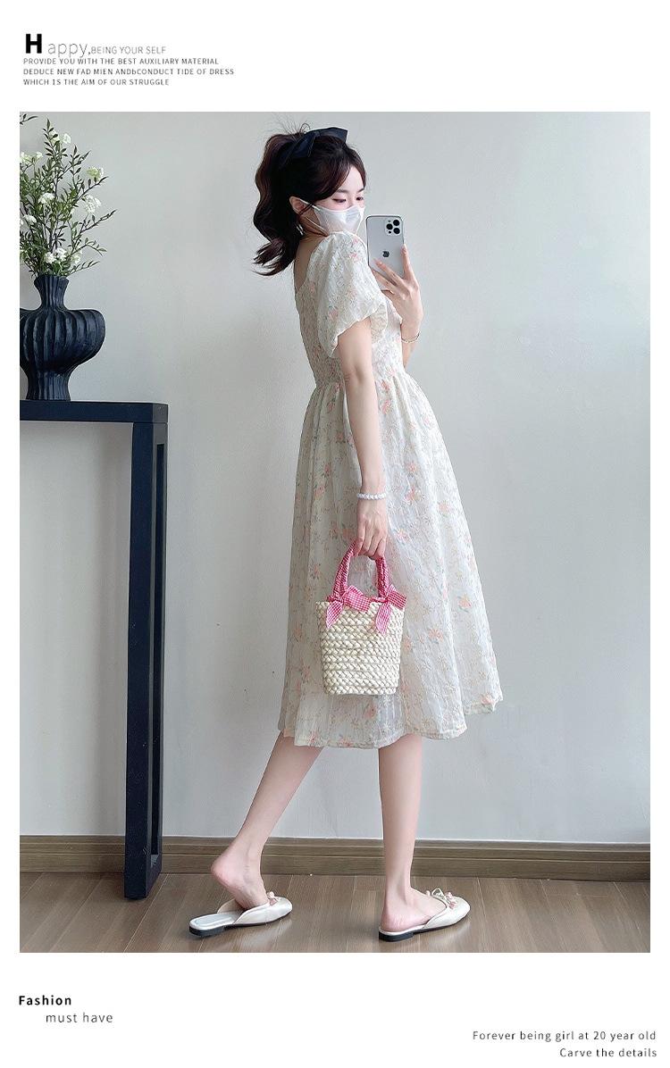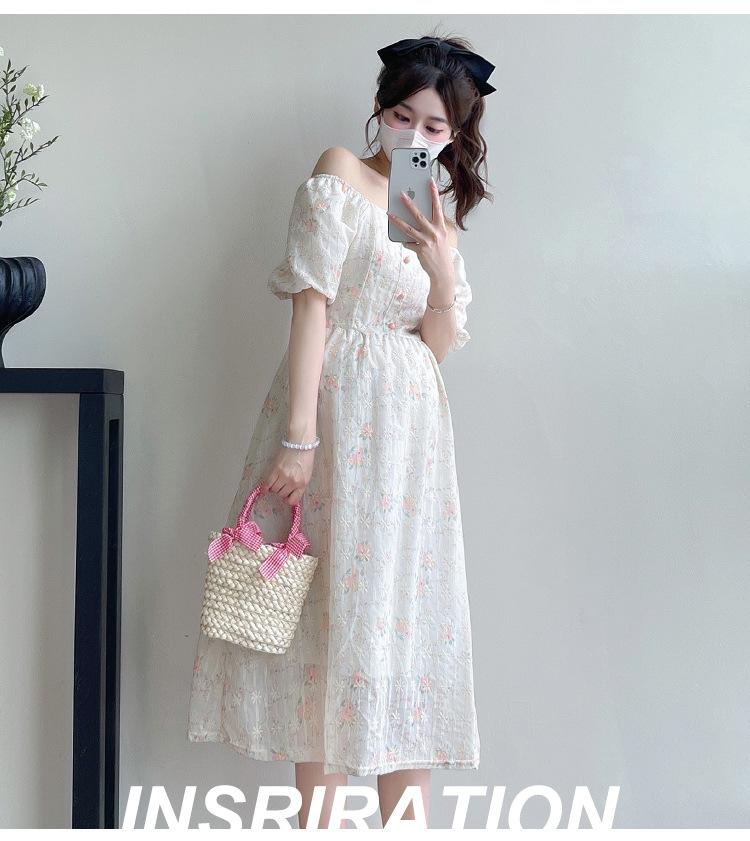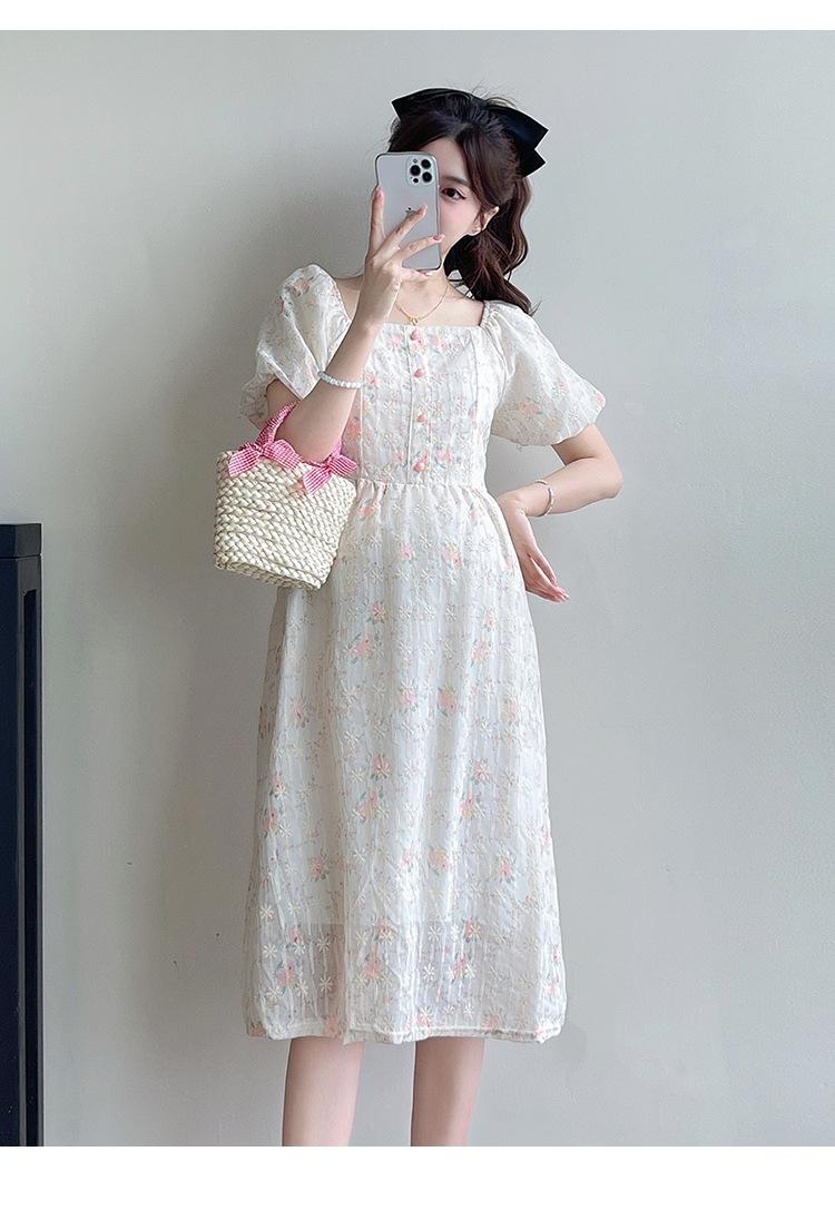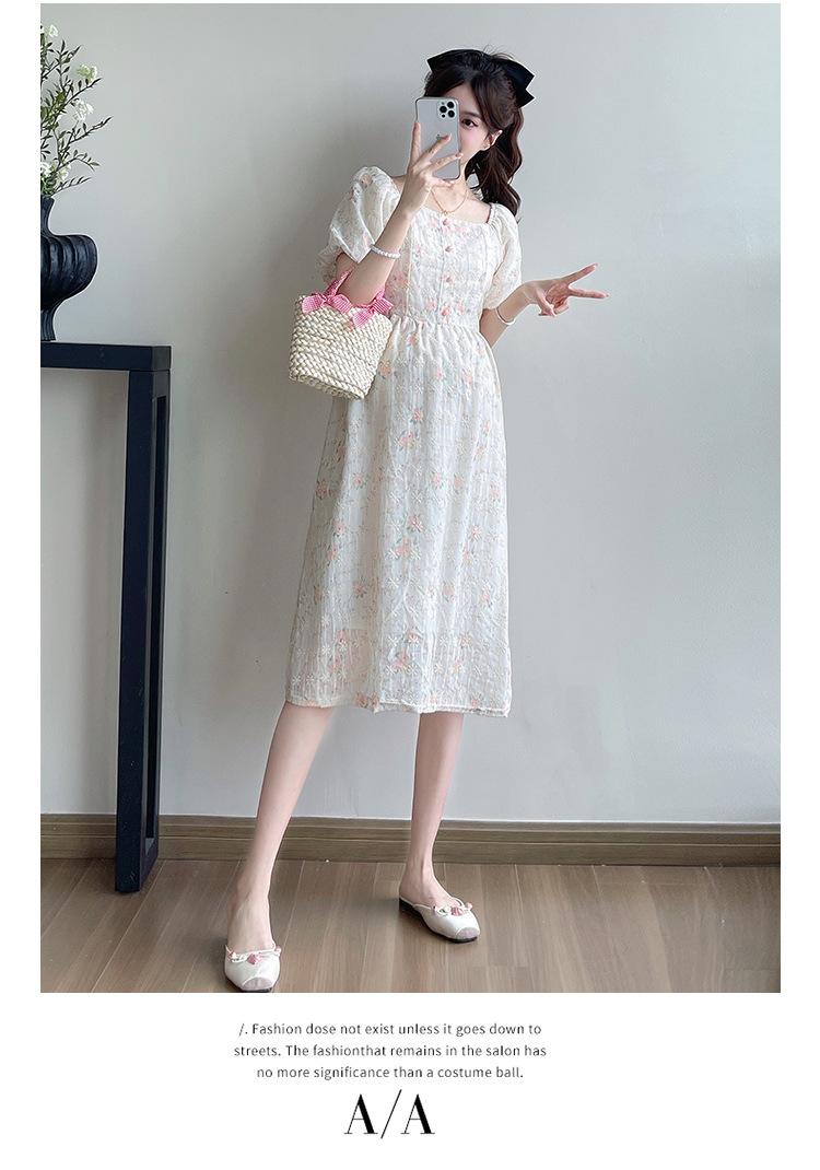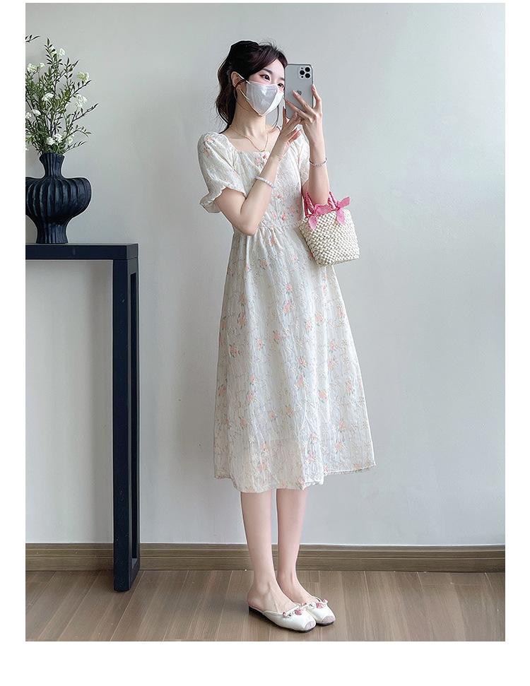Roupa de Maternidade 2025 Verão Novo Doce Fashion Literário Pequeno Fresco Floral Tamanho Grande Vestido de Maternidade