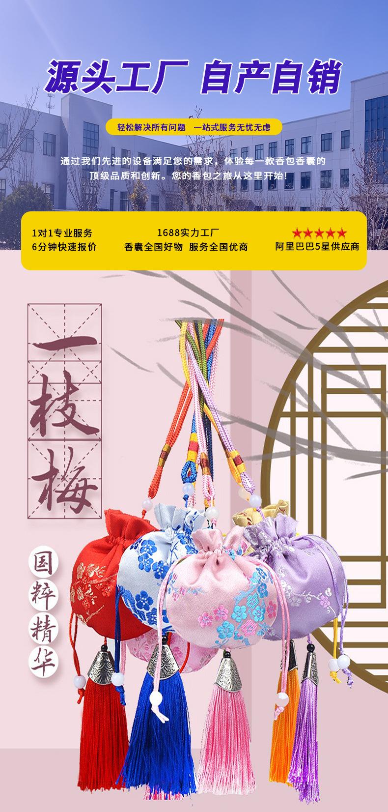 Sachê Personalizado de Estilo Tradicional Chinês para o Festival do Meio Outono com Borla de Flor de Ameixeira, Bolsa Portátil para Hanfu, Saco Vazio, Sachê Ornamento Pendurado