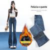 Calças com Babados para Menina Soltas Cintura Alta Forradas com Lã Espessas Quentes Jeans para Mulheres