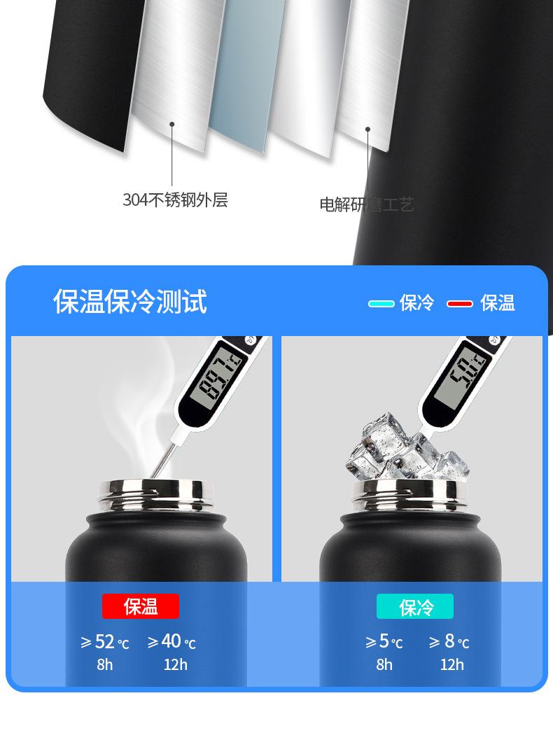 Garrafa Espacial Transfronteiriça Vácuo de Camada Dupla Copo de Água Esportivo de Grande Capacidade para Exterior Conservação do Frio Aço Inoxidável 304 Copo de Água Isolado
