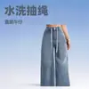 Jeans Populares Americanos Retrô de Pernas Largas da Temu para Mulheres, Lavados com Cordão de Cintura Alta Soltos Caimento Jeans de Perna Reta