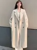 Casaco de Lã Dupla Face Feminino Comprimento Médio Acima do Joelho 2022 Inverno Novo Solto Elegante Casaco 100% Lã