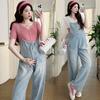 2025 Nova Moda Mãe Grávida Redução de Idade Temperamento Primavera e Verão Casual Calças de Alças para Grávidas Vestido de Maternidade Básico de Duas Peças