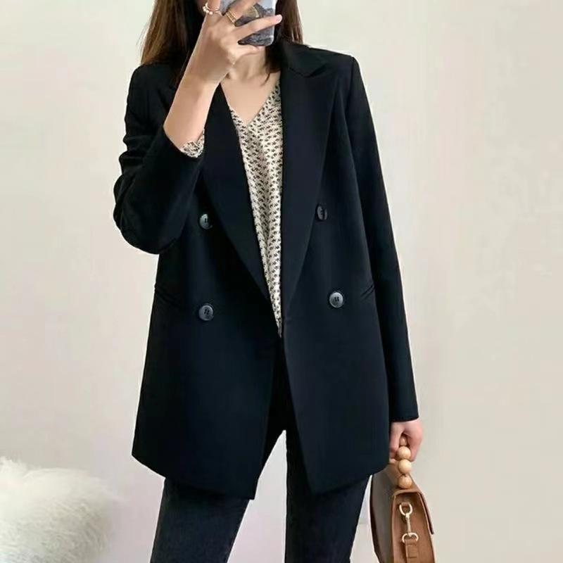 Blazer Preto Pequeno Feminino 2023 Novo Primavera e Outono Estilo Coreano Celebridade da Internet Estilo Britânico Solto Elegante Estilo Ocidental Moda Tendência