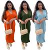 2022 Transfronteiriço Europeu e Americano Amazon Export Primavera, Verão e Outono Novo Vestido Elegante Feminino de Manga Longa com Decote em V Tamanho Grande