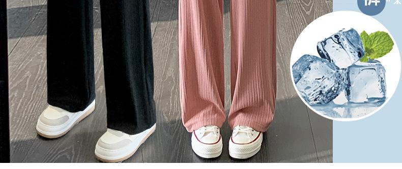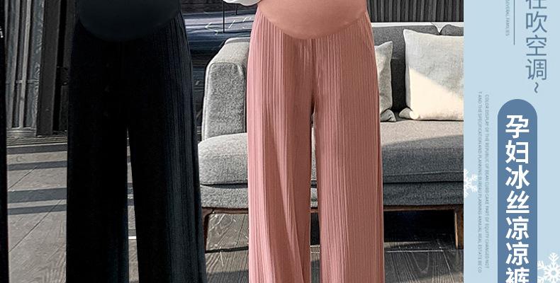 Calças Femininas Grávidas 2023 Verão Nova Moda Fina Seda Gelo Calças de Perna Larga Casual Soltas Retas Calças de Barriga para Grávidas