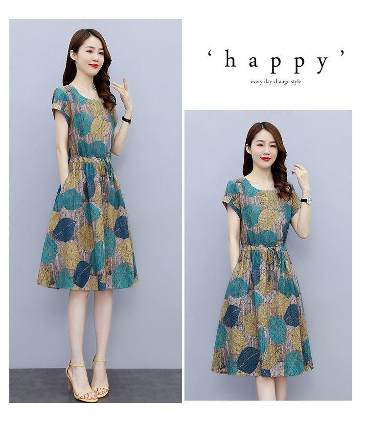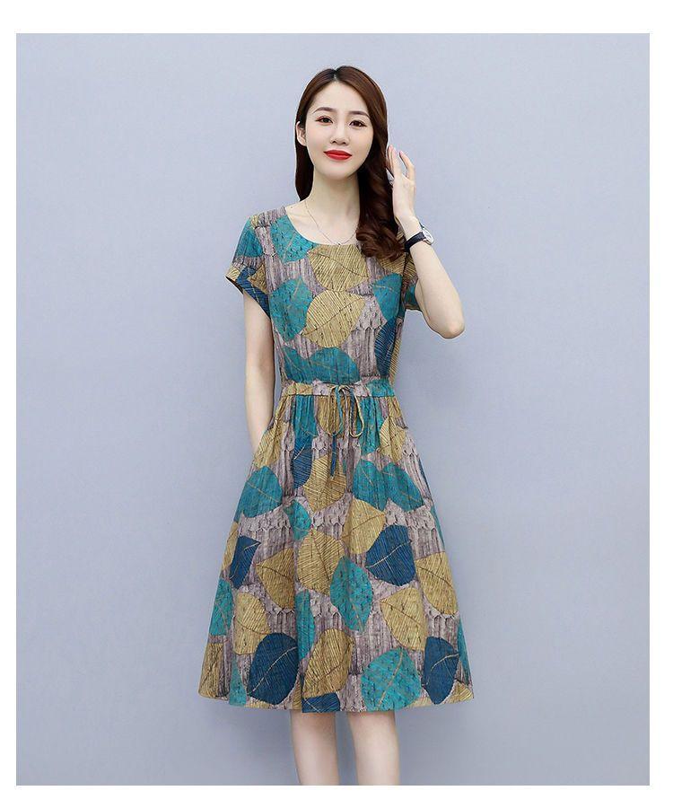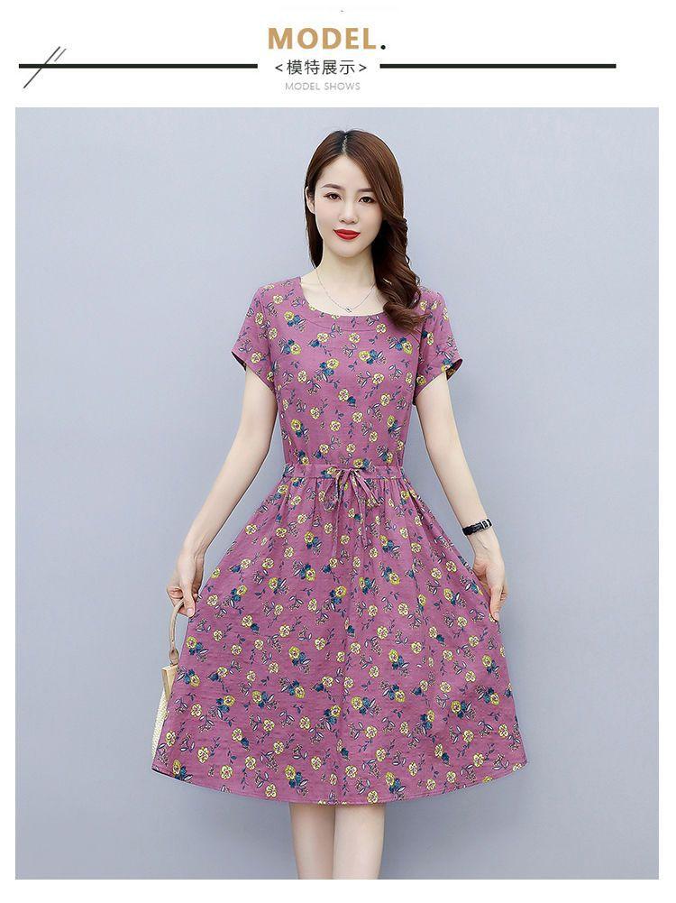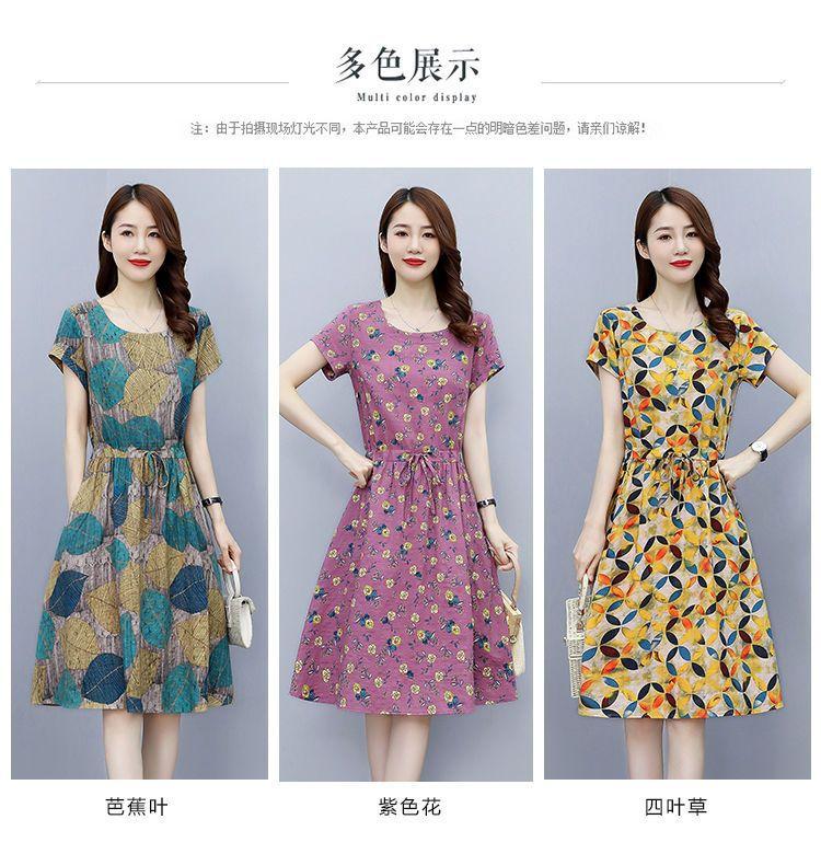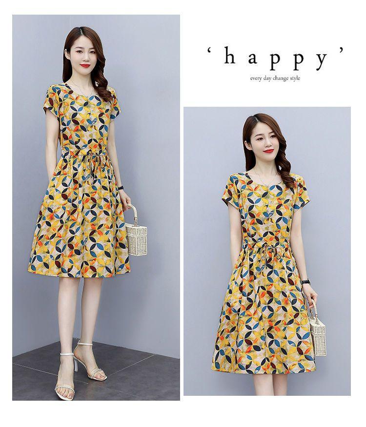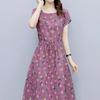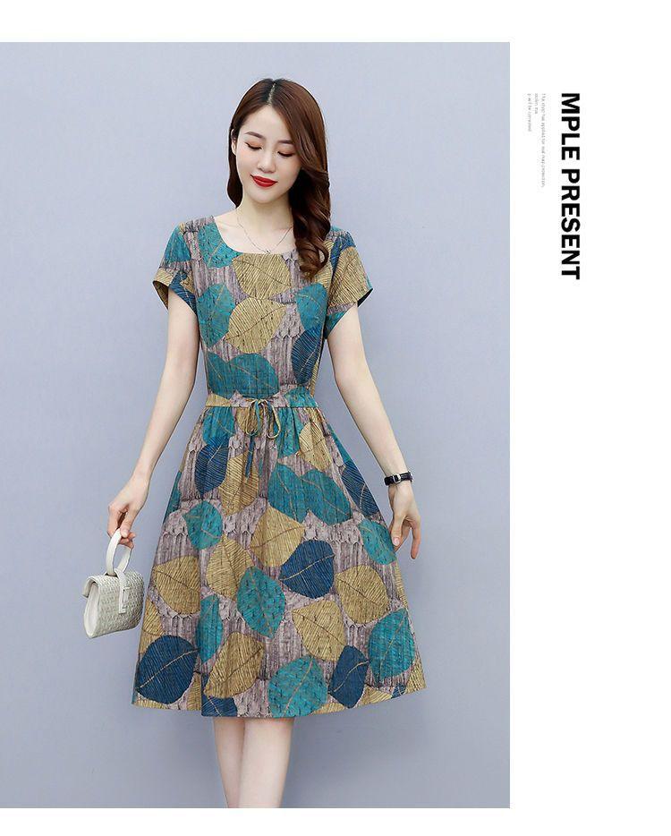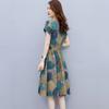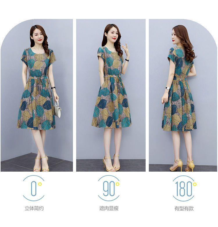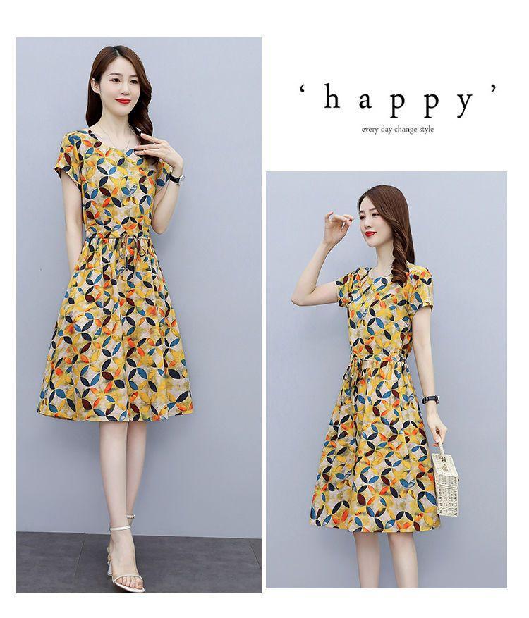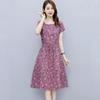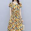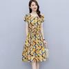 Vestido Feminino 2024 Verão Novo Saia de Manga Curta Comprimento Médio Moda Floral Casual Cintura Vestido A-line para Cabelo