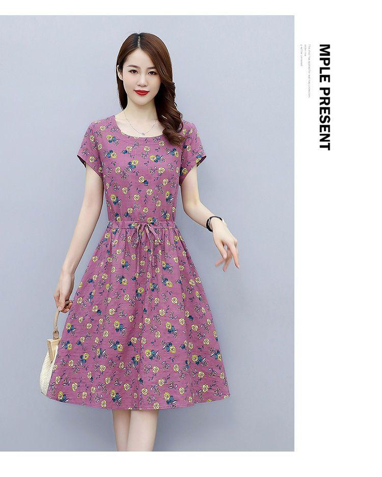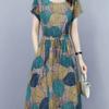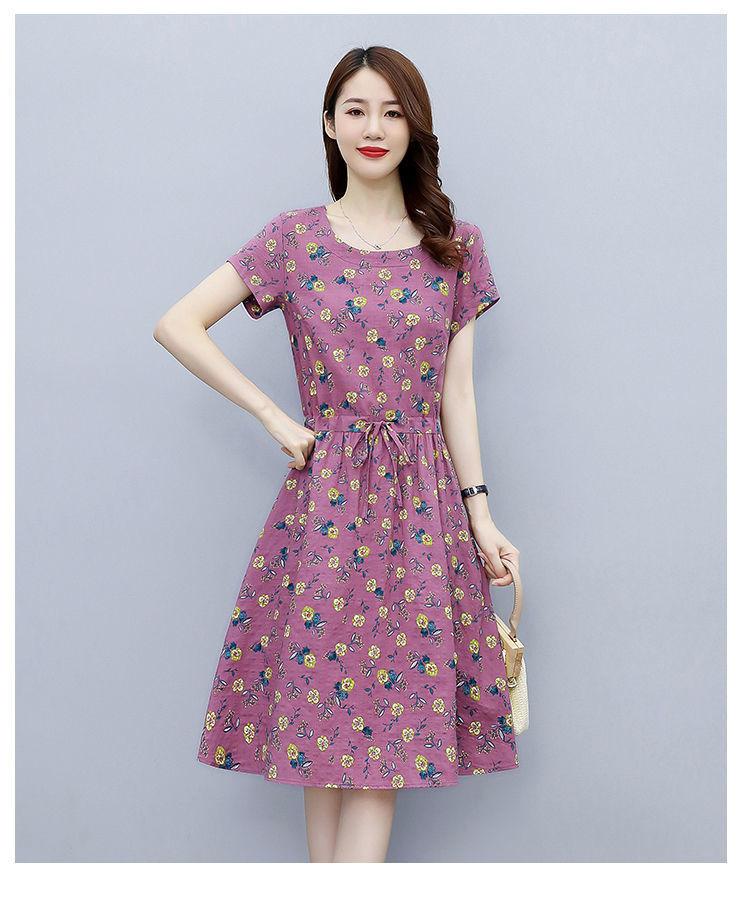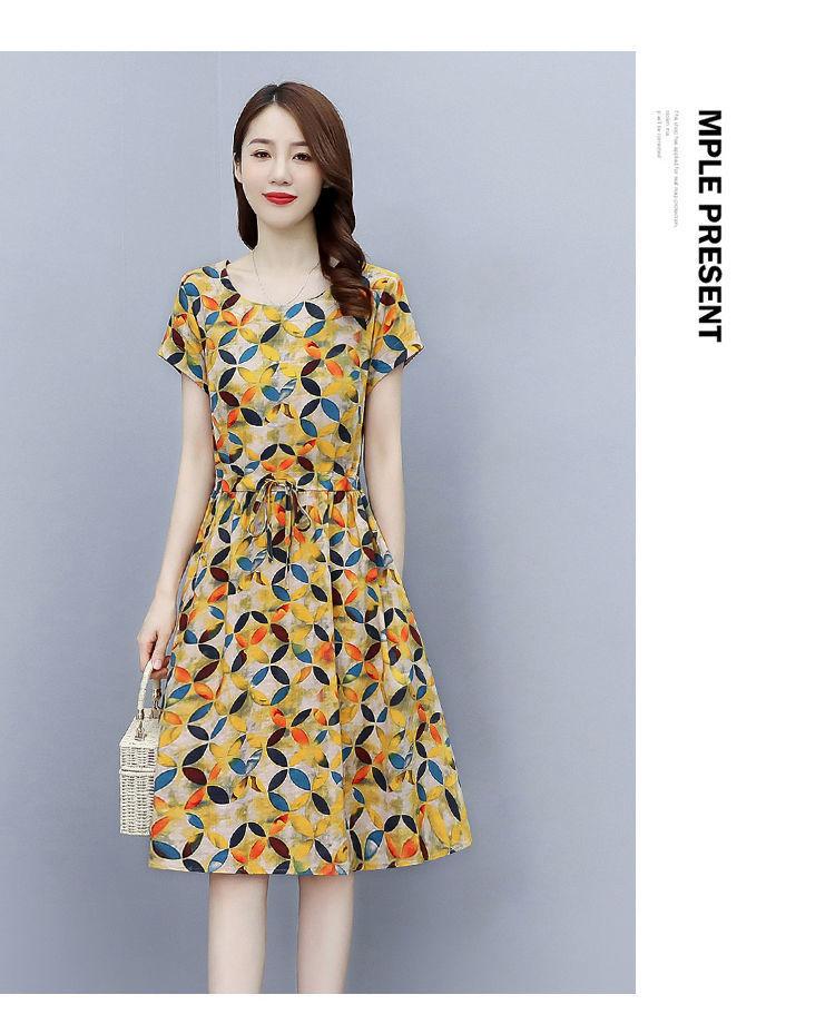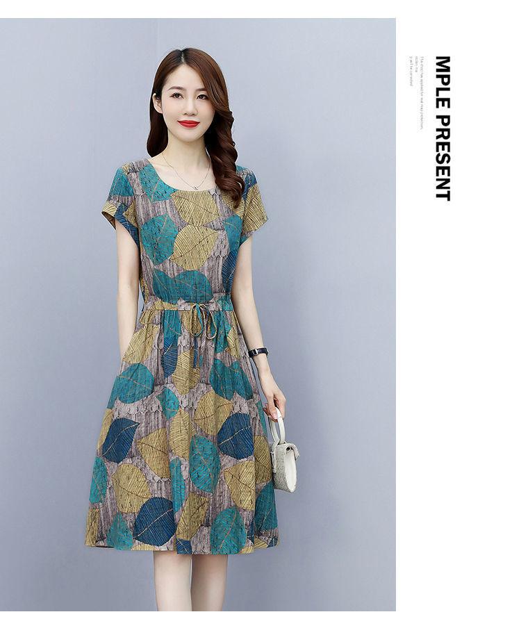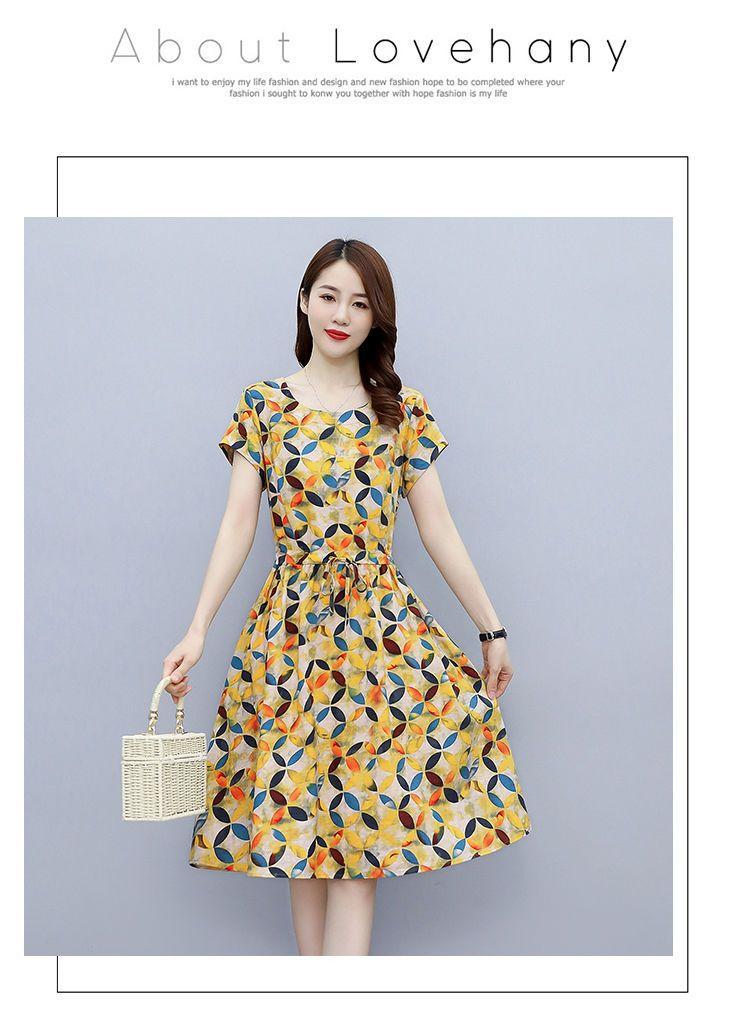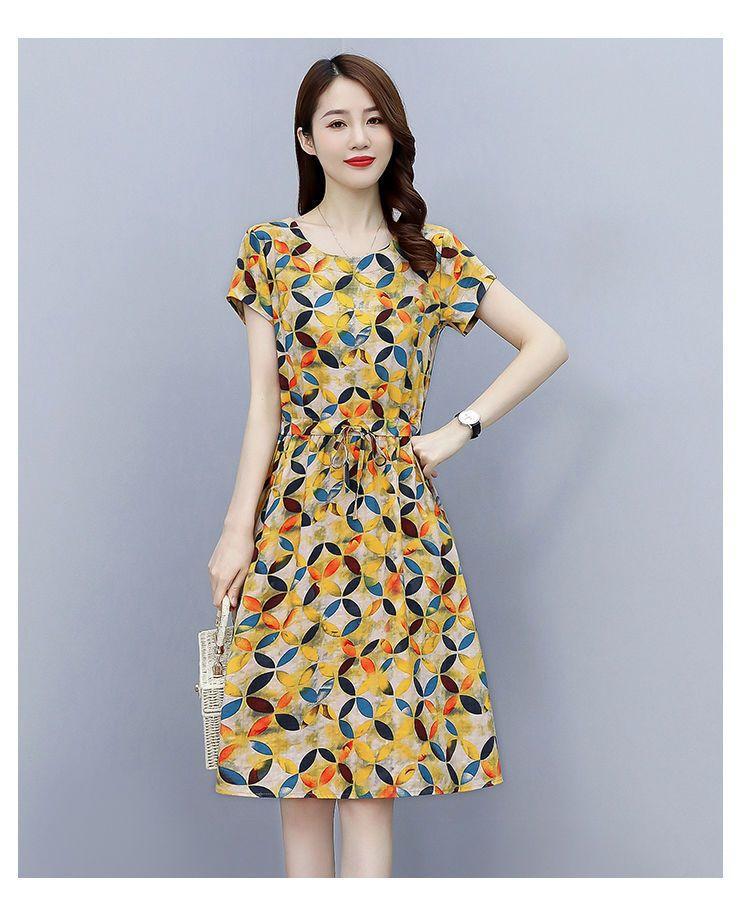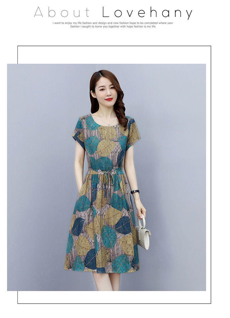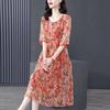 Vestido Feminino 2024 Verão Novo Saia de Manga Curta Comprimento Médio Moda Floral Casual Cintura Vestido A-line para Cabelo