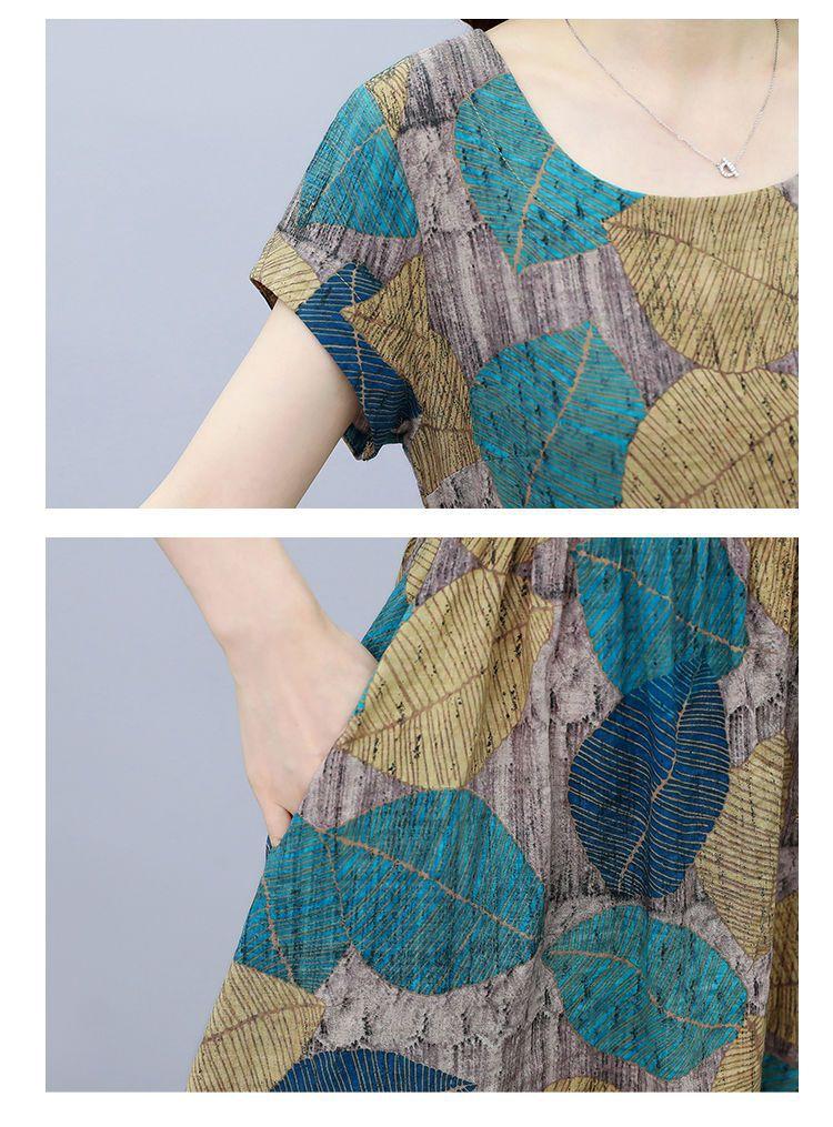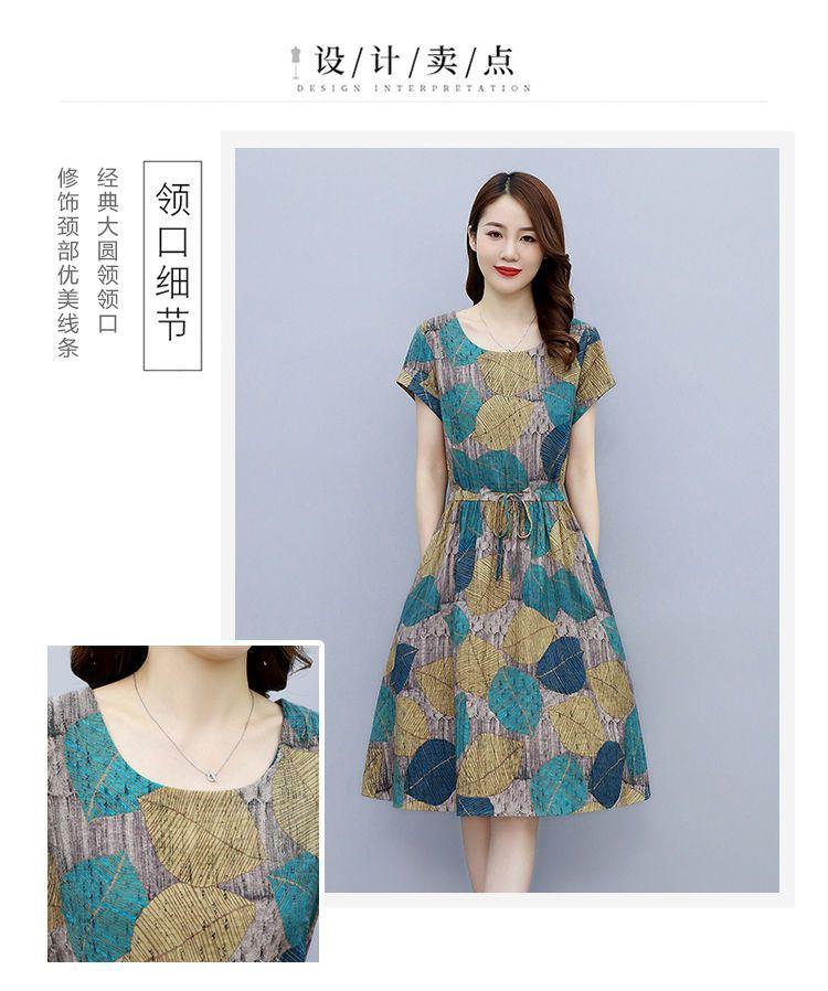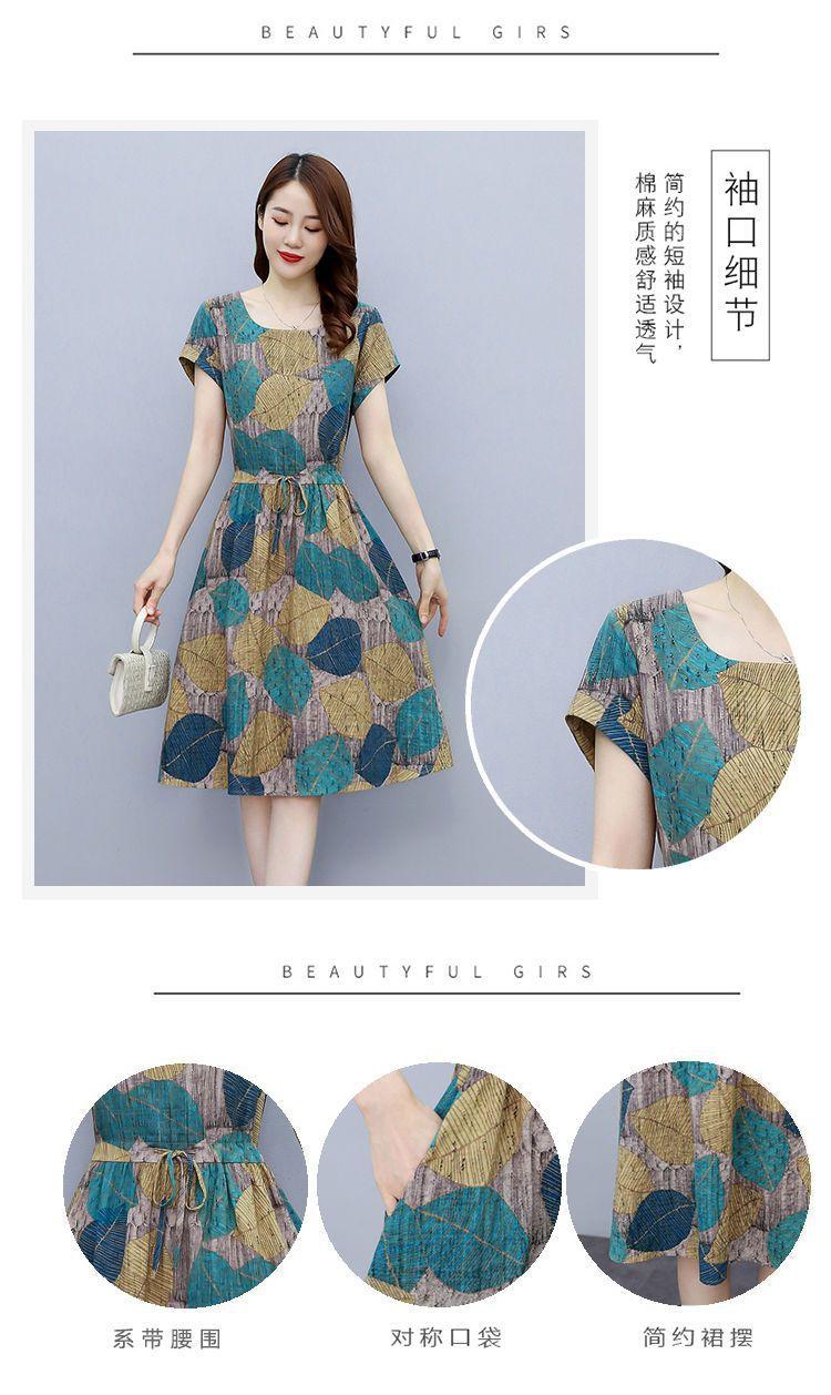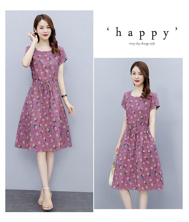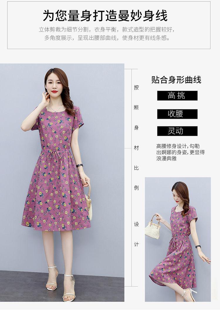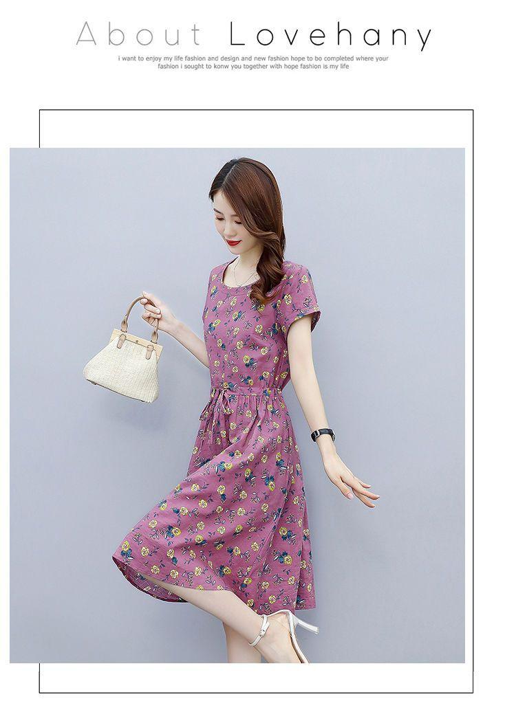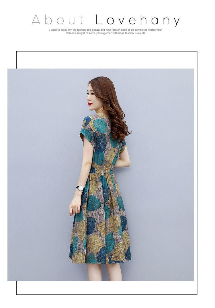 Vestido Feminino 2024 Verão Novo Saia de Manga Curta Comprimento Médio Moda Floral Casual Cintura Vestido A-line para Cabelo