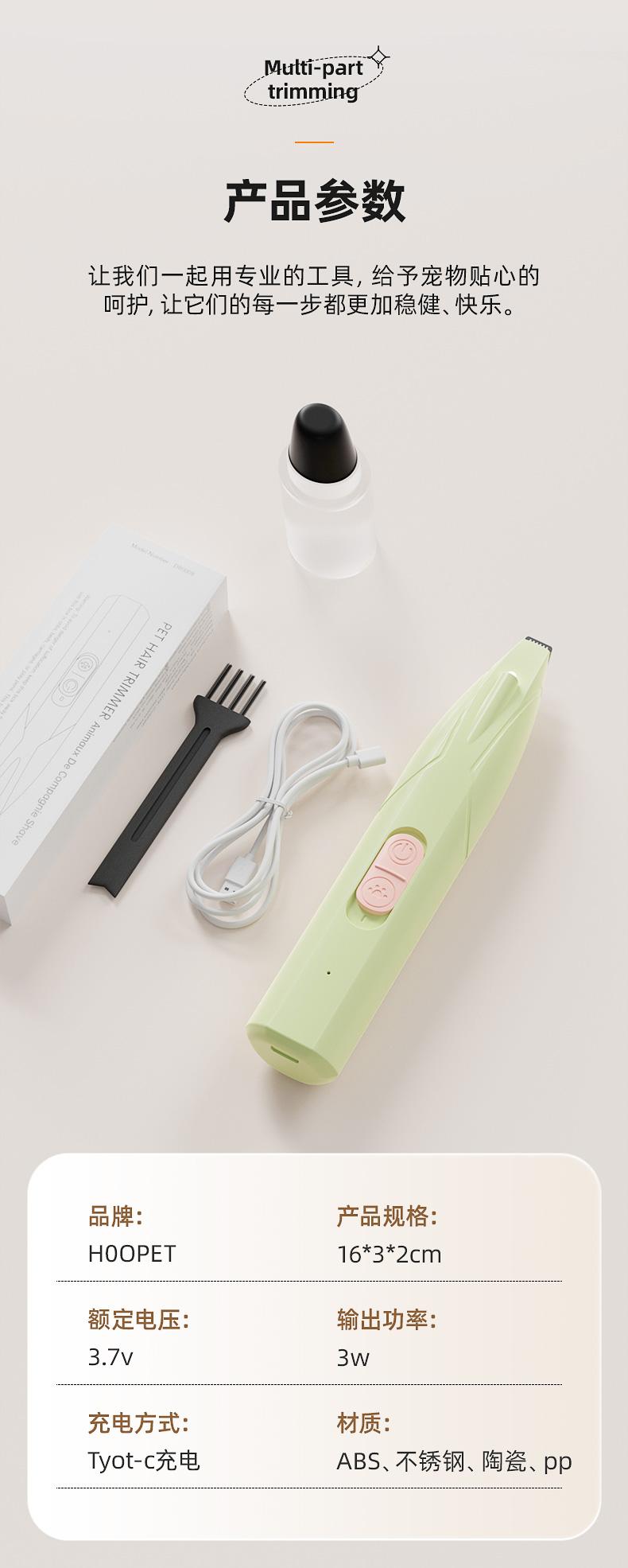 【Nome do Produto】:HOOPET Pet Cabeça Estreita com Luz Aparador de Pelos dos Pés Recarregável Verde/Azul