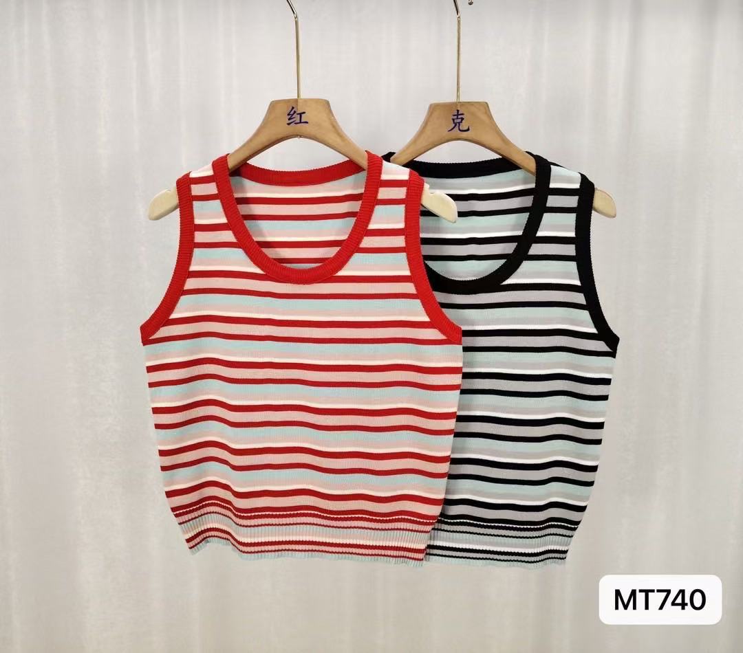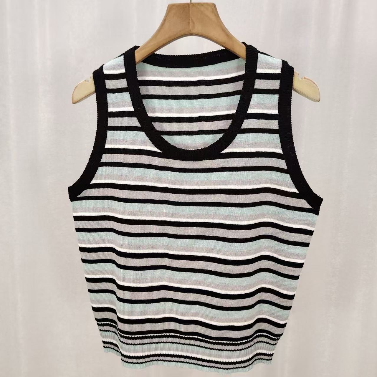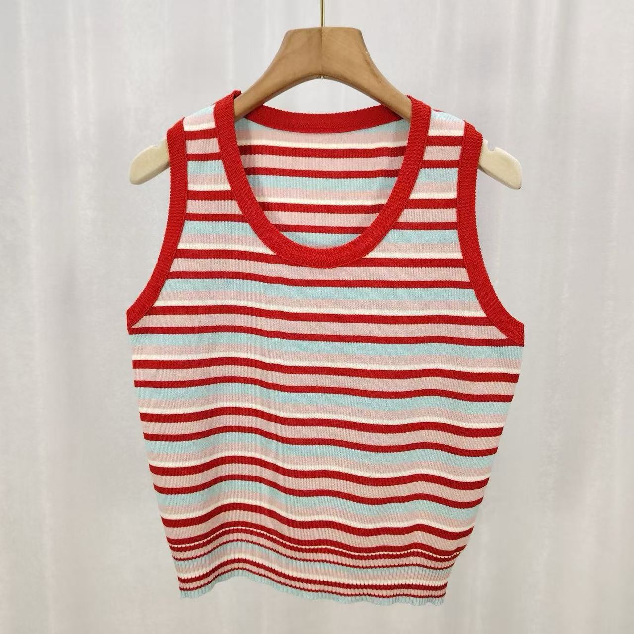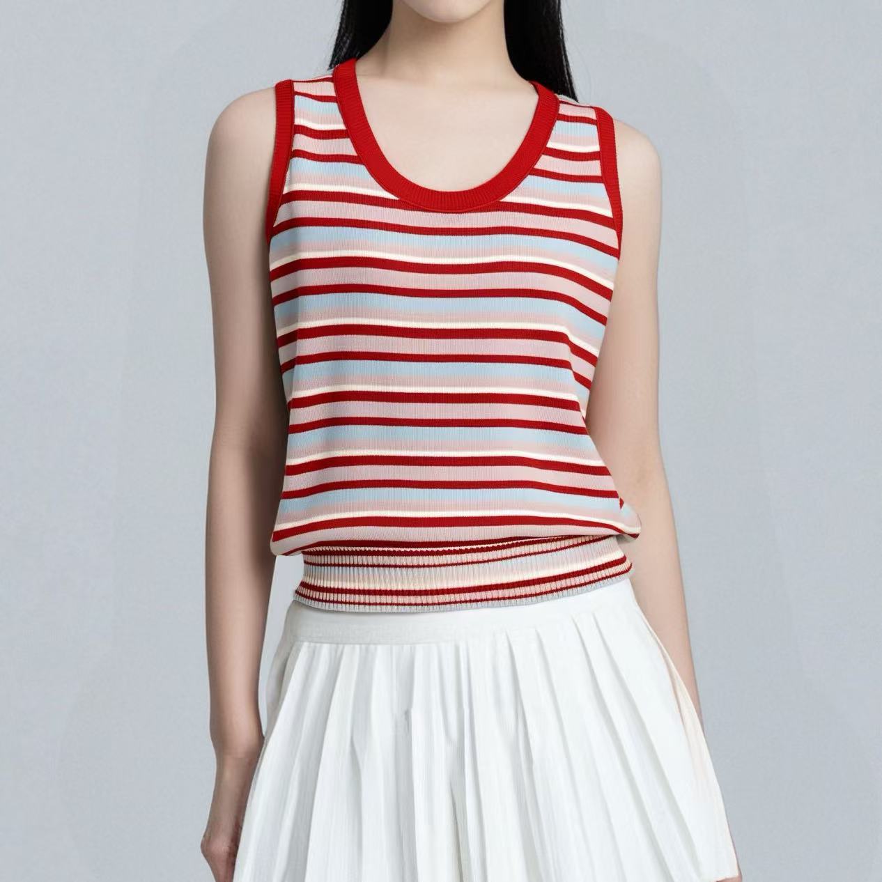 Regata Listrada Estilo Coreano Alça Espaguete Vintage Verão Fina Nova Solta Tricô Sem Mangas Top Feminino Cami Feminino Tendência