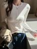 Camisa de Base Modal com Gola Redonda para Outono, T-shirt Top Simples de Manga Longa para Outono e Inverno