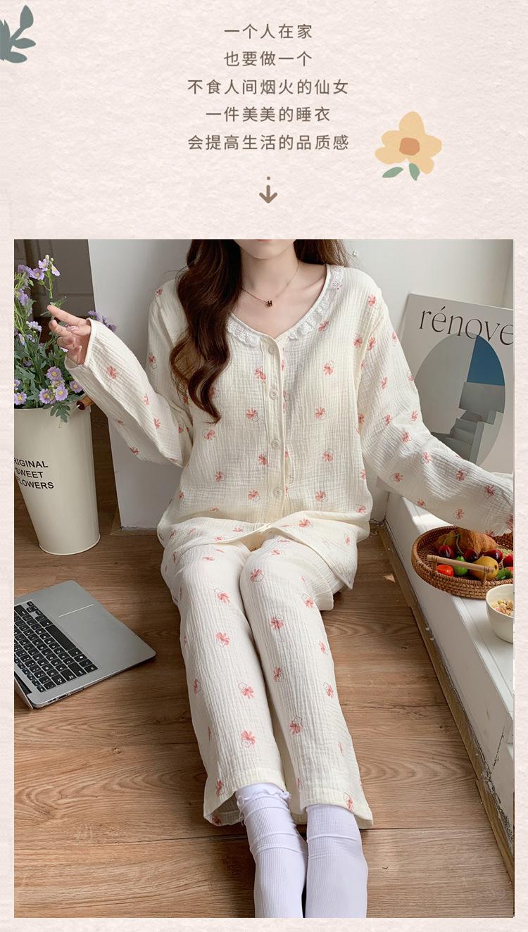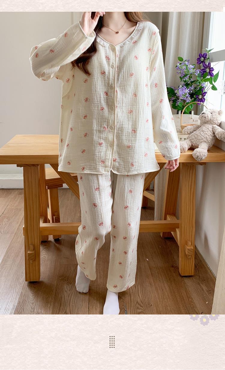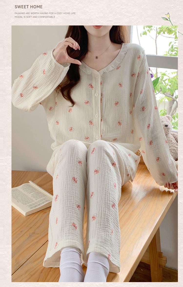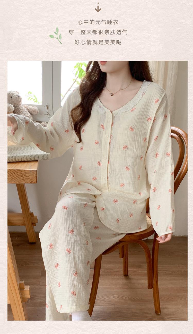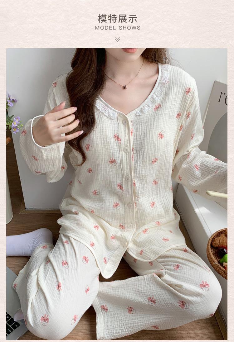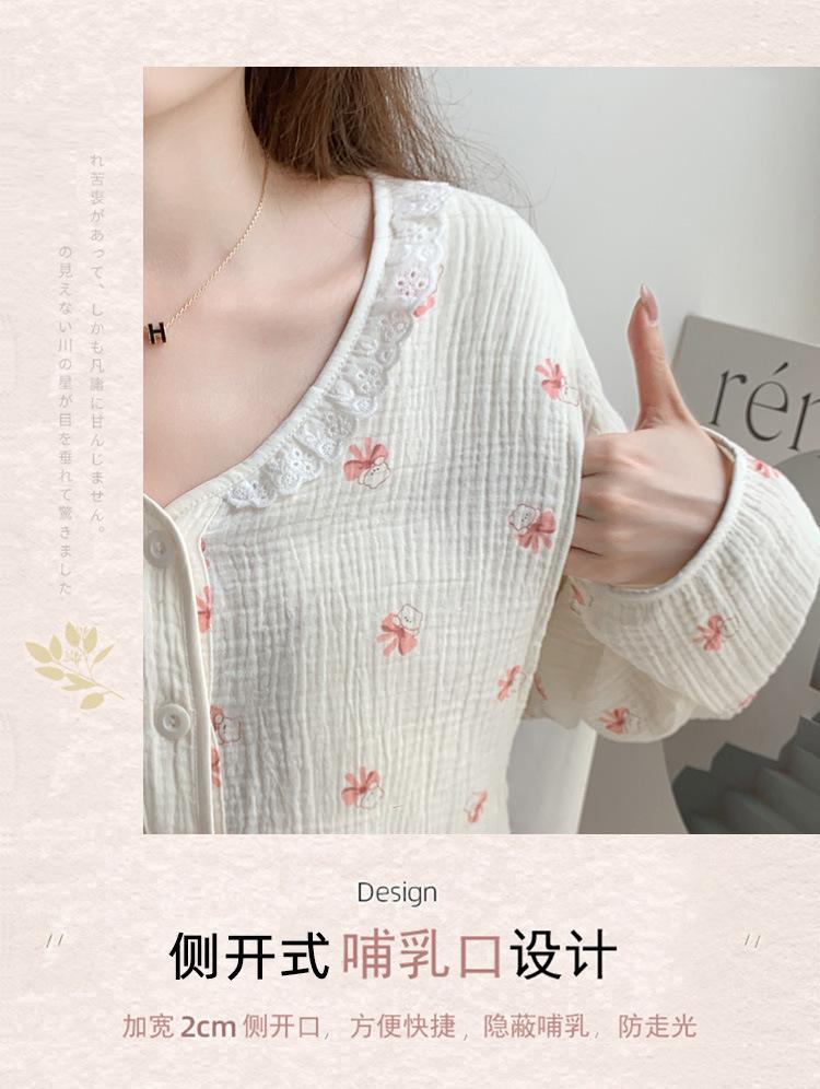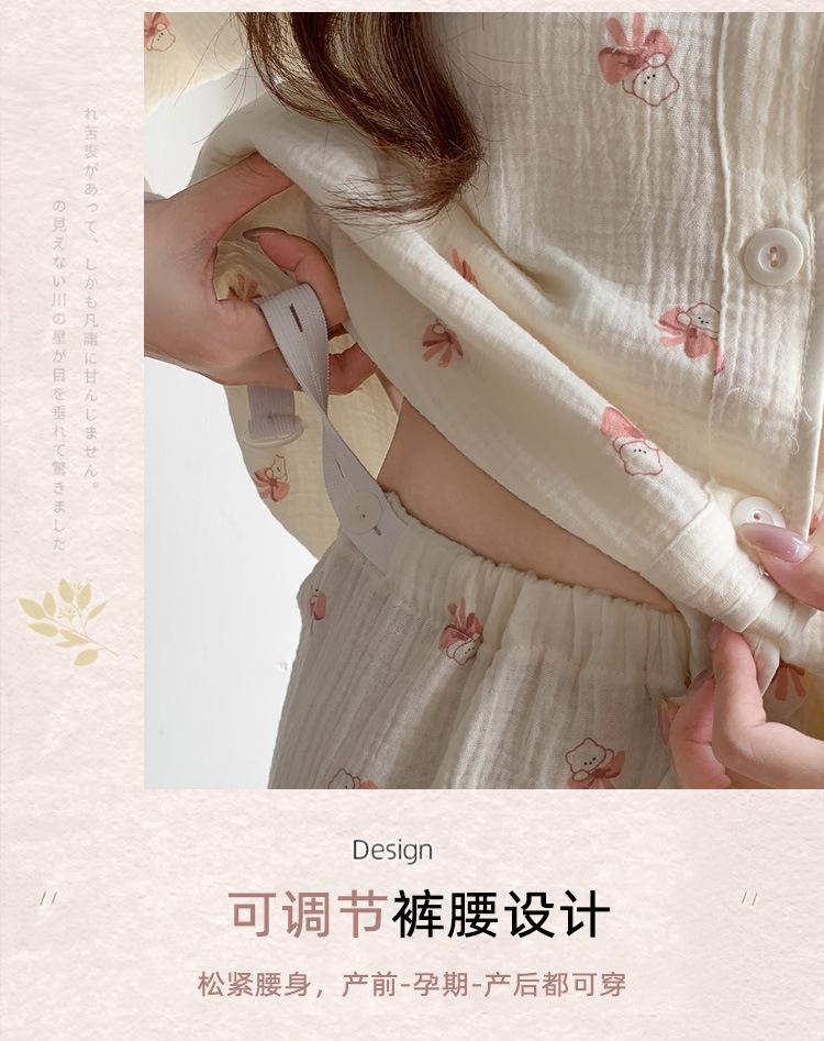 Roupa Pós-Parto de Verão, Pijama de Maternidade de Gaze de Algodão Puro Fino Pós-Parto, Doce e Vem com Bojos para Amamentação, Não Aperta a Barriga Durante a Gravidez