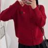 2025 Outono/Inverno Novidade Cardigã Tricotado Moderno Coração Senso de Design Versátil Casual Temperamento Manga Longa Suéter Feminino