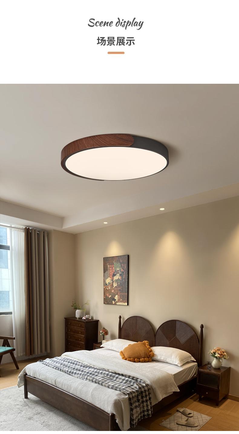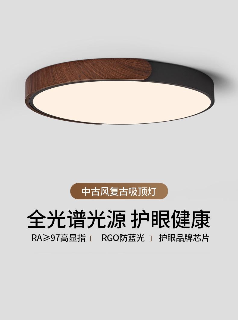 Full spectrum-black+walnut color-diameter 50*h5cm-48w-wrought iron walnut color ceiling lamp