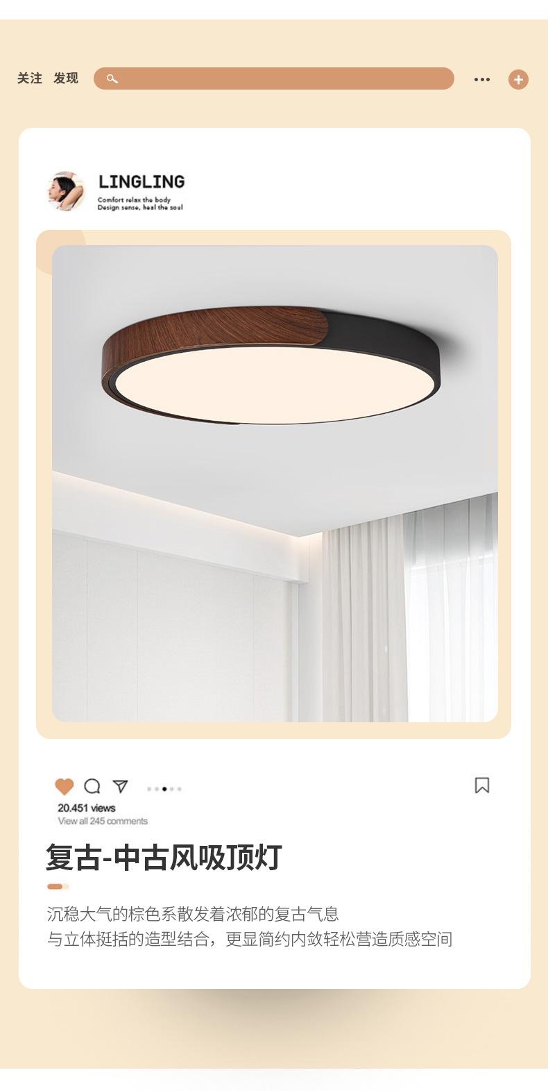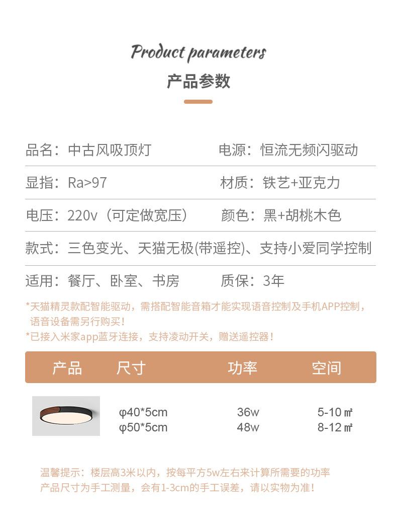 Regular model-black+walnut color-diameter 50*h5cm-48w-wrought iron walnut color ceiling lamp