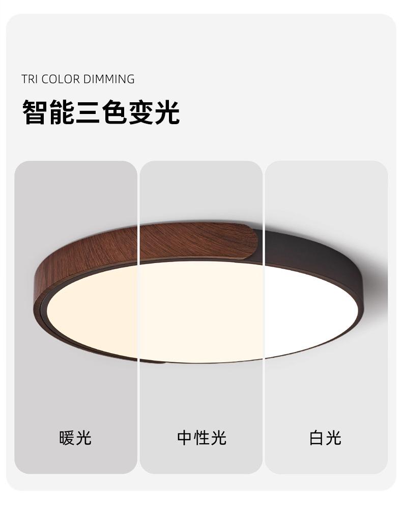 Regular model - black + walnut color - diameter 40*h5cm - 36w - iron walnut color ceiling lamp, Regular model-...