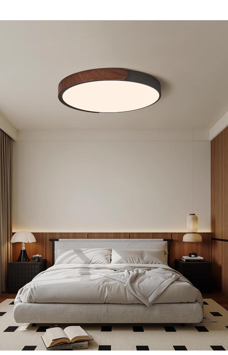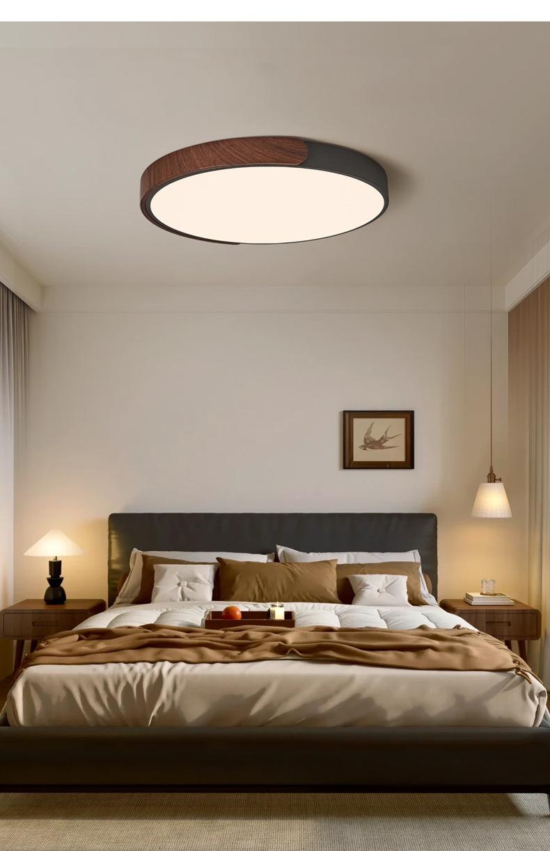 Regular model - black + walnut color - diameter 40*h5cm - 36w - iron walnut color ceiling lamp