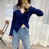 2026 Chic Temperamento Curto Decote V Primavera Estilo Quente Suéter Slimming High-end Roupa Íntima Camisa Básica Tricotada Mulher