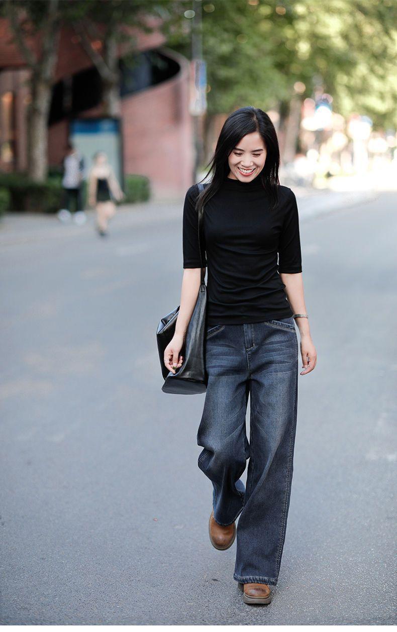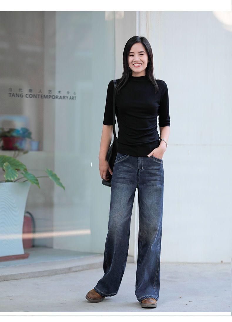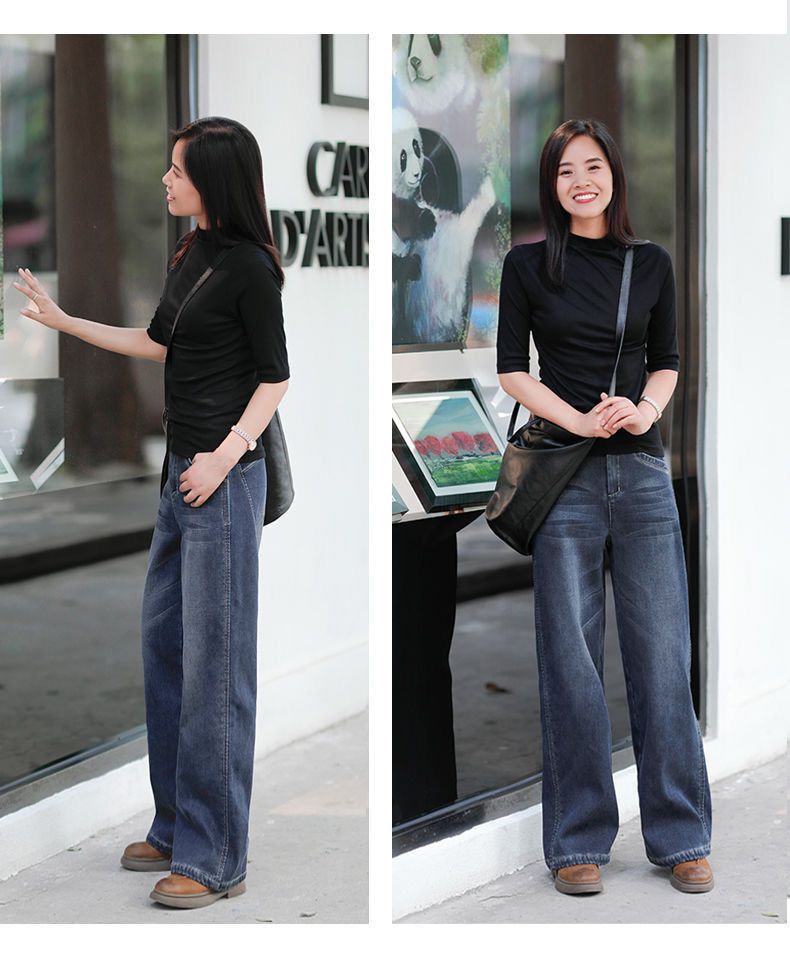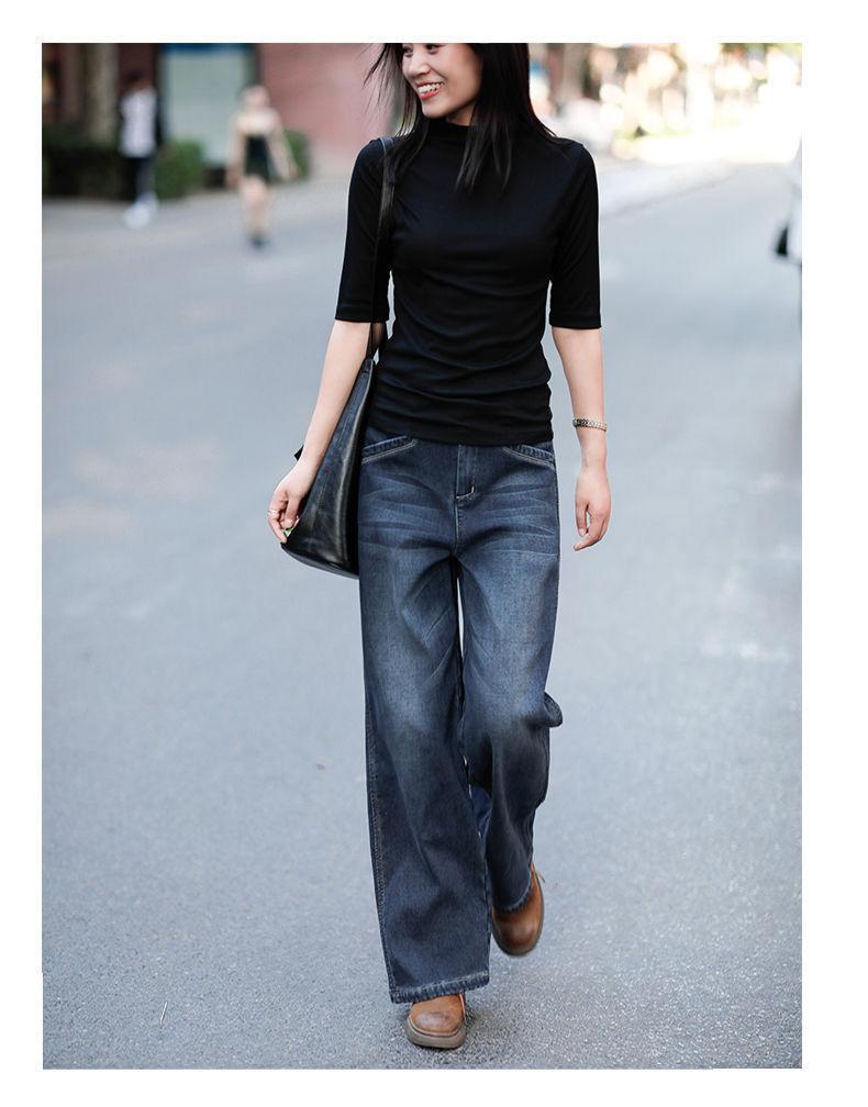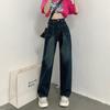 Calça Jeans Pendente 2022 Primavera e Verão Nova Cintura Alta Reta Solta Emagrecimento Tamanho Grande Perna Larga Moda Casual Calças para Mulheres