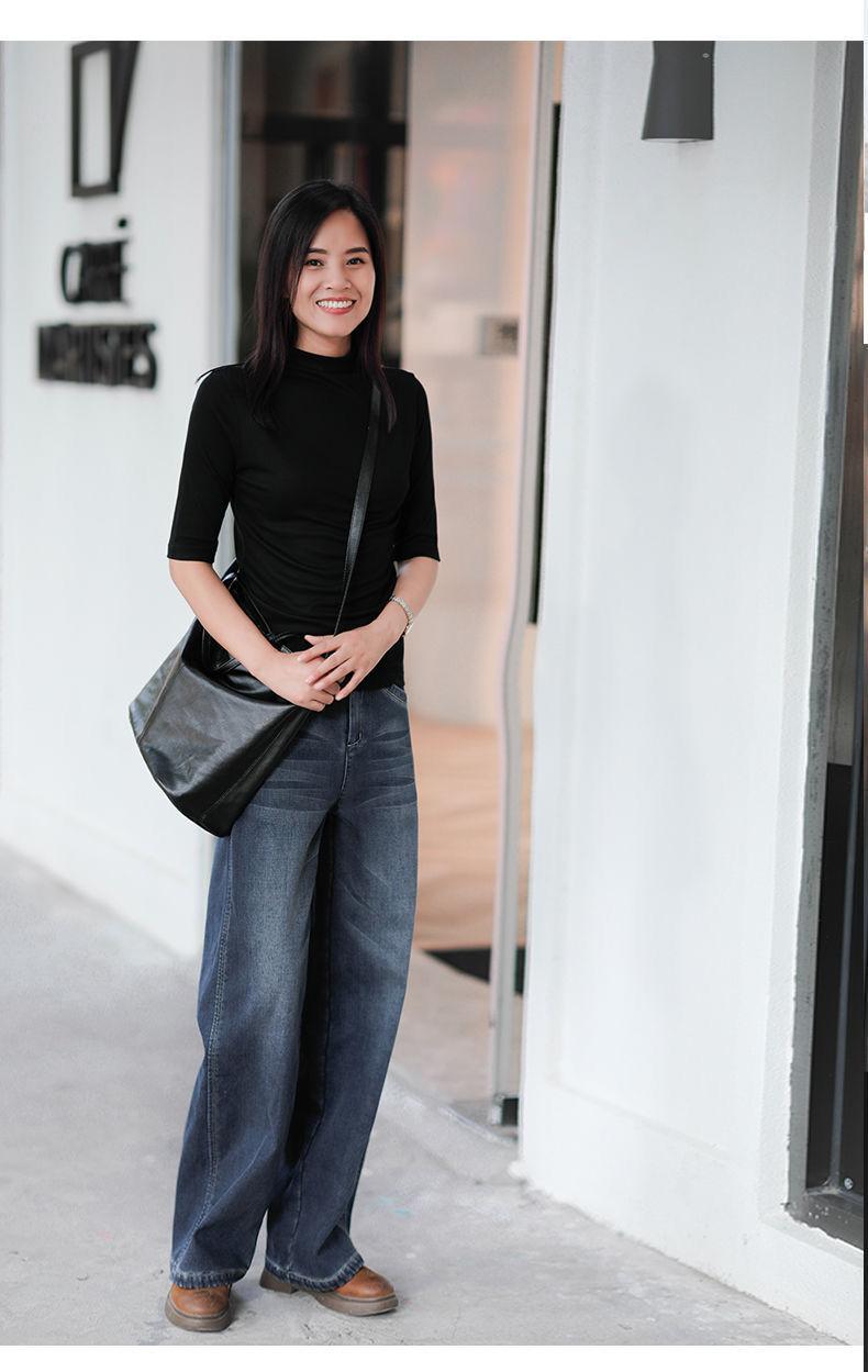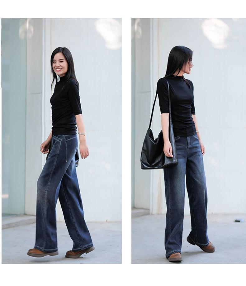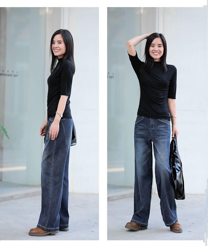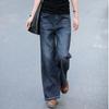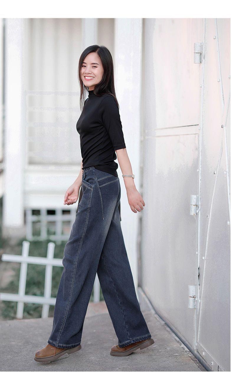 Calça Jeans Pendente 2022 Primavera e Verão Nova Cintura Alta Reta Solta Emagrecimento Tamanho Grande Perna Larga Moda Casual Calças para Mulheres