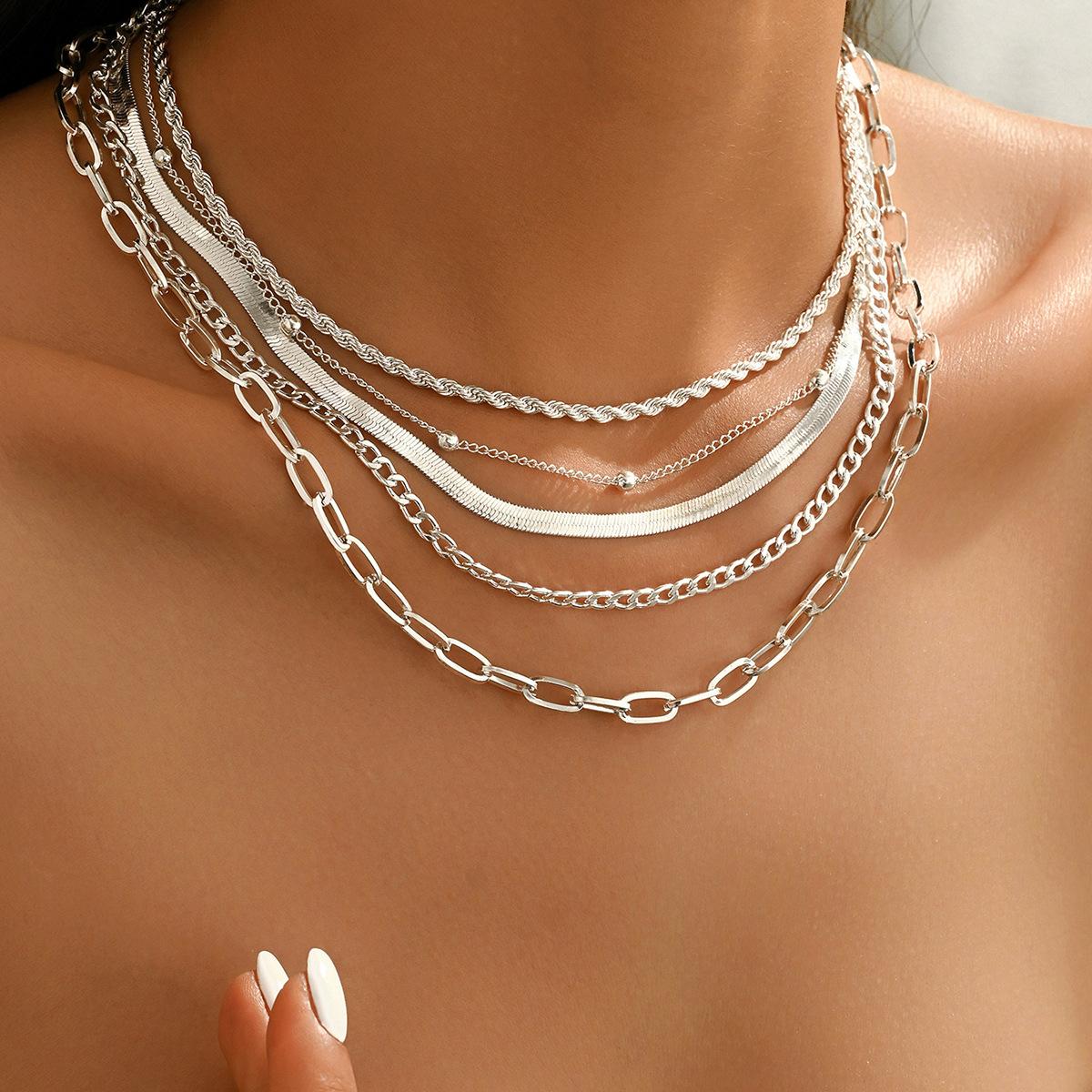 Colares Hip-Hop Multicamadas Atacado Transfronteiriço Mais Vendido Personalizado Metal Estilo Punk Joias Unissex de Alto Nível