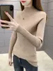 Moda Feminina Outono e Inverno Novo Suéter Elegante Gola Meia Alta Slim Fit Emagrecedor Camada Base Tricô para Mulheres