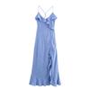 2025 Verão Novo Europeu e Americano Transfronteiriço Moda Feminina Cintura Grande Chiffon Longo Vestido de Alças W028 6911