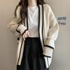 Casaco Cardigan Suéter Decote V Estilo Faculdade Feminino Comprimento Médio Primavera e Outono Roupa Exterior 2024 Novo Estilo Solto Preguiçoso Estilo Coreano