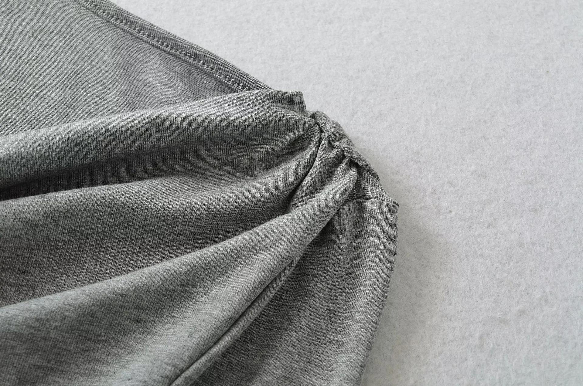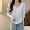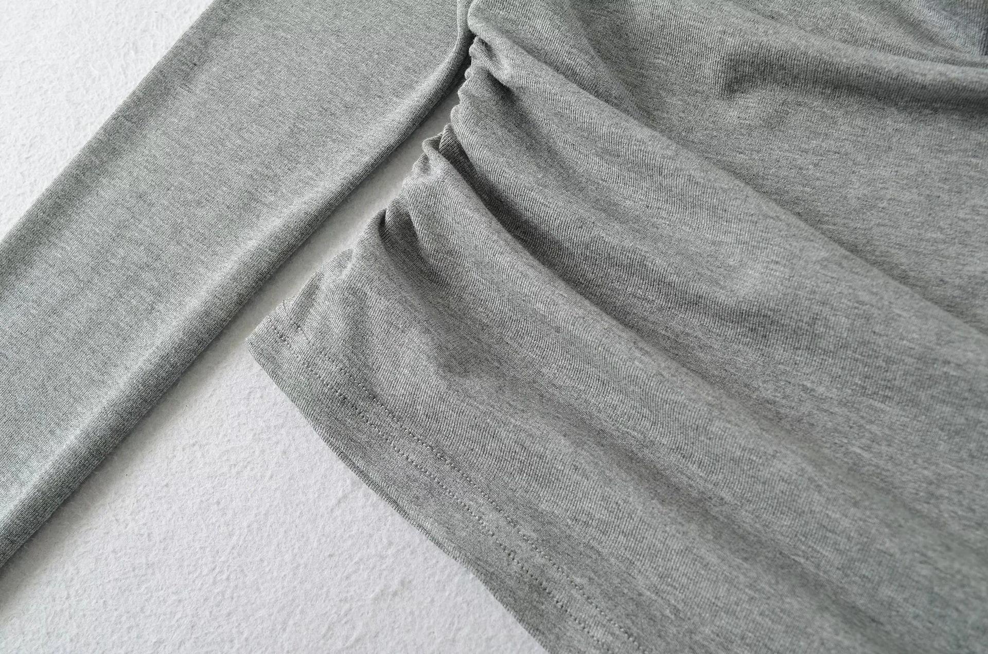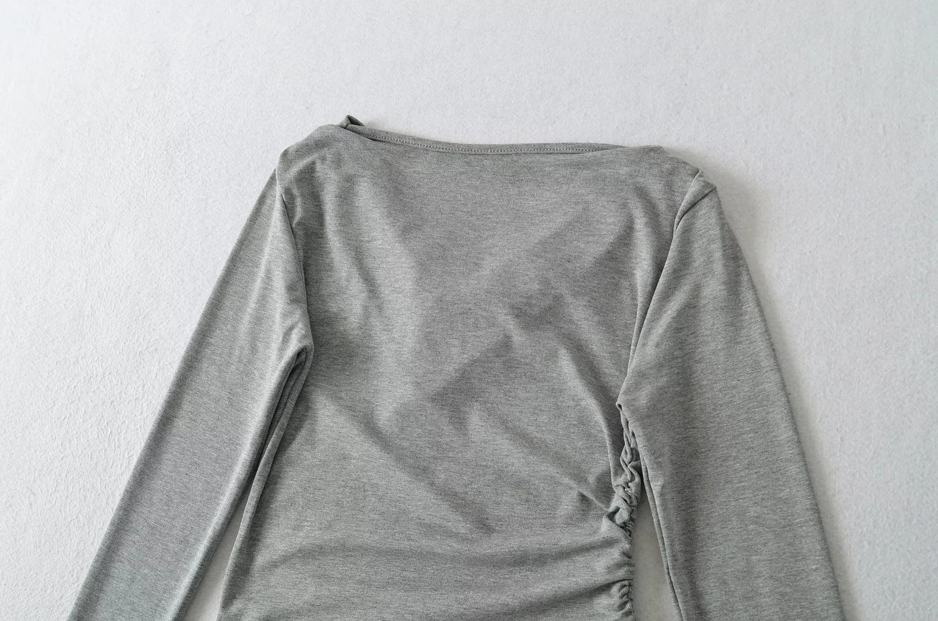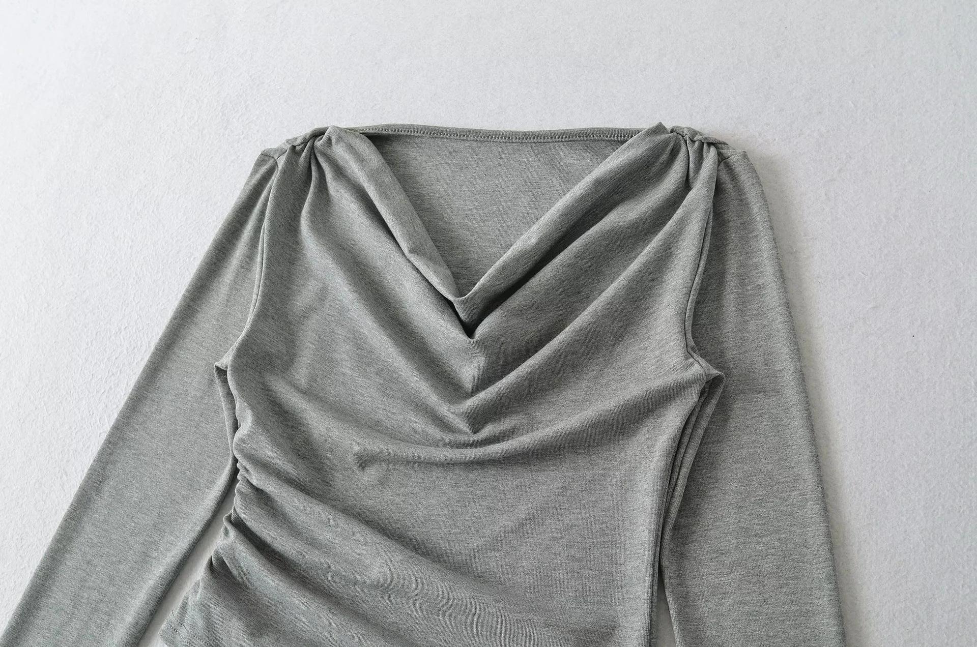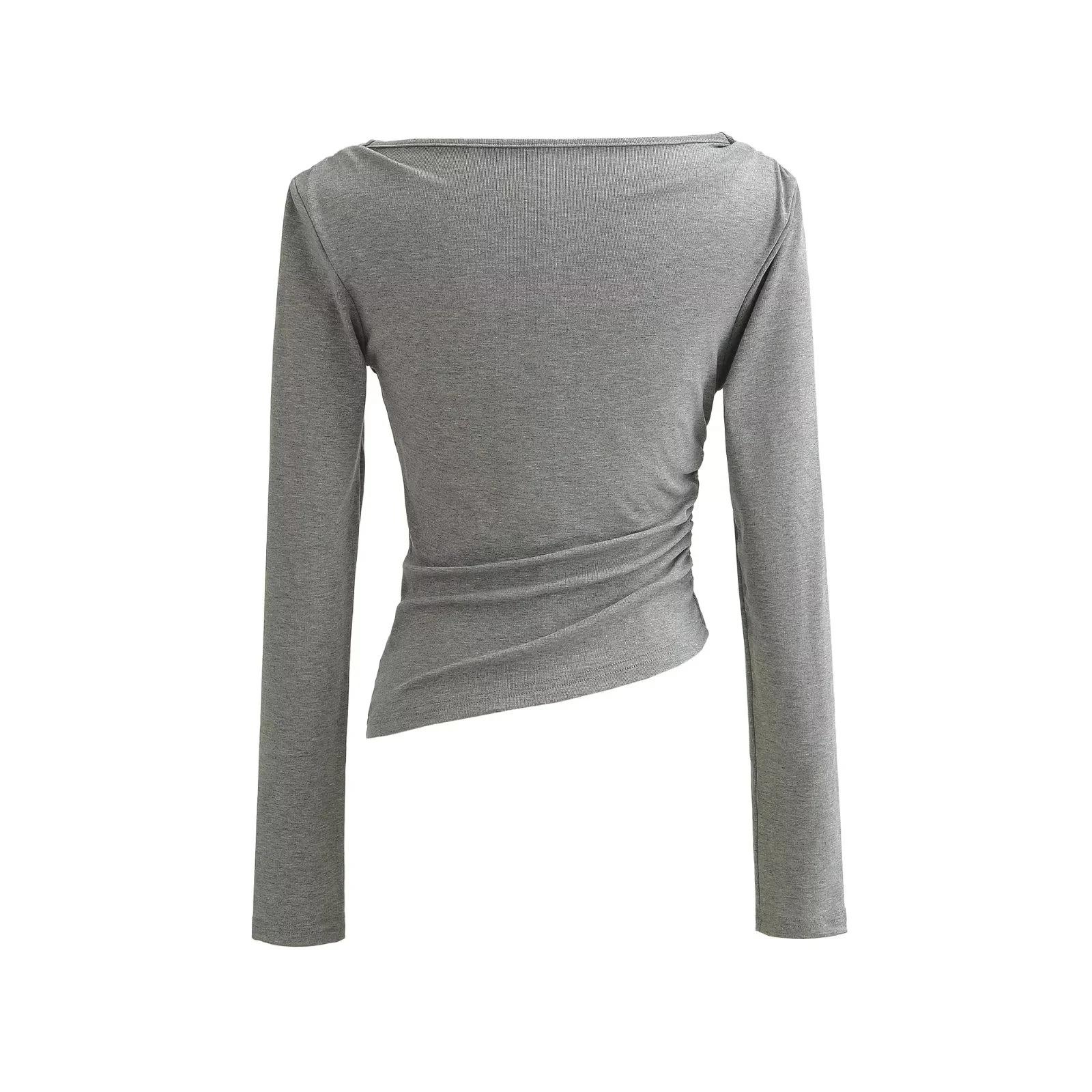 Camiseta feminina outono nova justa com gola drapeada e manga comprida, design moderno, menina quente, desejo puro, ombro de fora, camisa básica para usar por baixo, top