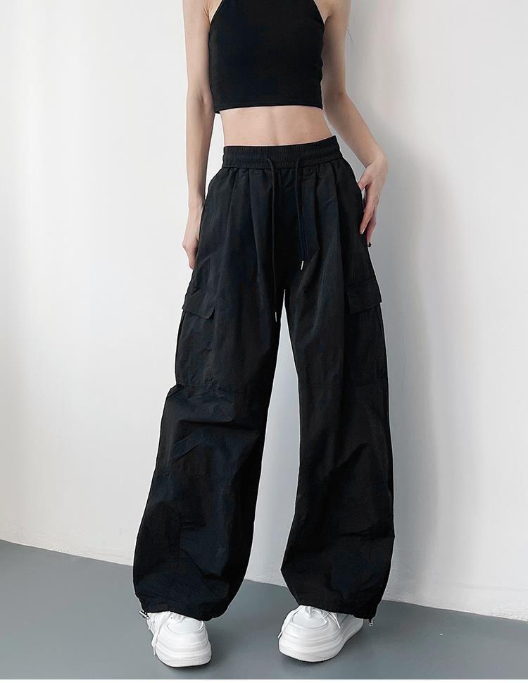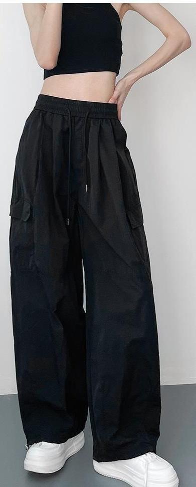 Calças Cargo Finas de Secagem Rápida Calças Americanas de Perna Larga para Mulheres Verão Soltas Modeladoras Seda Gelo Leggings Casuais Calças Esportivas para Mulheres
