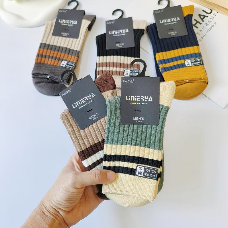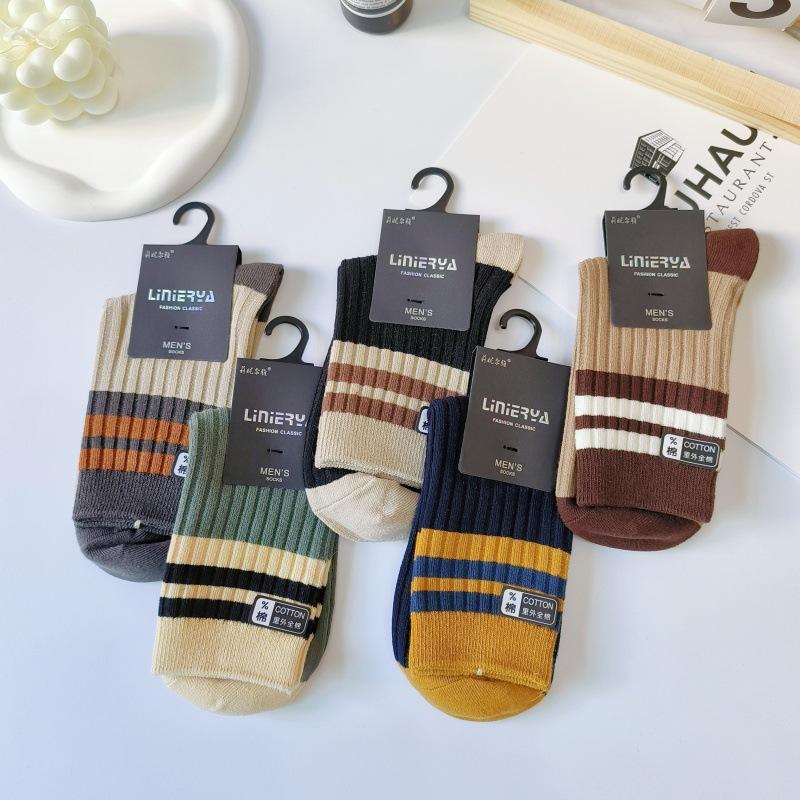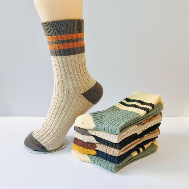 Meias masculinas de alta qualidade, extra grossas, de algodão penteado, agulha dupla, cano médio As meias são embaladas como mostrado na foto, com papelão e ganchos para cada par. Foco no fornecimento de supermercados, com códigos de barrasSuporte para envio direto, entrega rápida