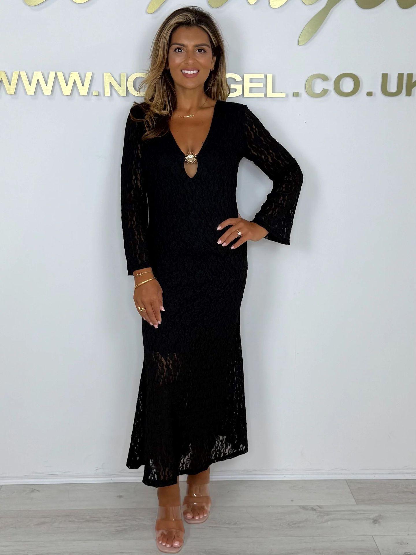 2025 Europeu e Americano Transfronteiriço Nova Saia de Praia Cor Pura Tricotado Sol Dourado Acessórios de Metal Recorte Vestido Longo